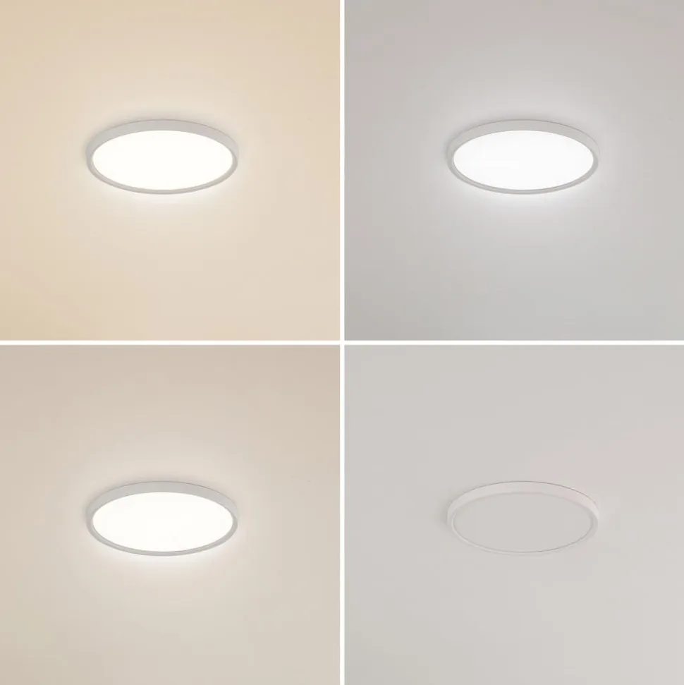 Pravin rund LED-loftlampe med tre forskellige hvide lysfarver Den runde LED-loftlampe Pravin er en allrounder til alle slags rum i hjemmet. Diskret i sit design, men med stor effekt. De tre lysfarver varmhvid (3.000 K), universalhvid (4.000 K) og dagslys (6.000 K) kan indstilles ved hjælp af lyskontakten. Det er denne funktionalitet, der gør dem så alsidige: varmere lys til hyggelige områder i huset, køligere lys til arbejdsområder – uanset om det er i arbejdsværelset eller i værkstedet i kælderen.
