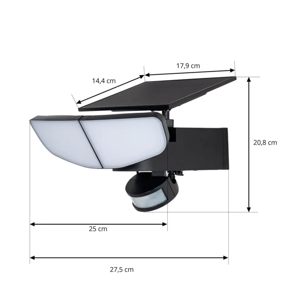 LED-solcellevæglampe Naelin er et fremragende valg for alle, der har brug for pålidelig og energieffektiv belysning til udendørs brug. Denne lampe er udstyret med varmhvide LED’er, der afgiver et behageligt og hyggeligt lys og dermed skaber en indbydende atmosfære i haven, på terrassen eller i indgangsområdet. LED-lampen har en integreret bevægelsessensor, der sikrer, at lampen tændes automatisk, når der registreres bevægelse i området.