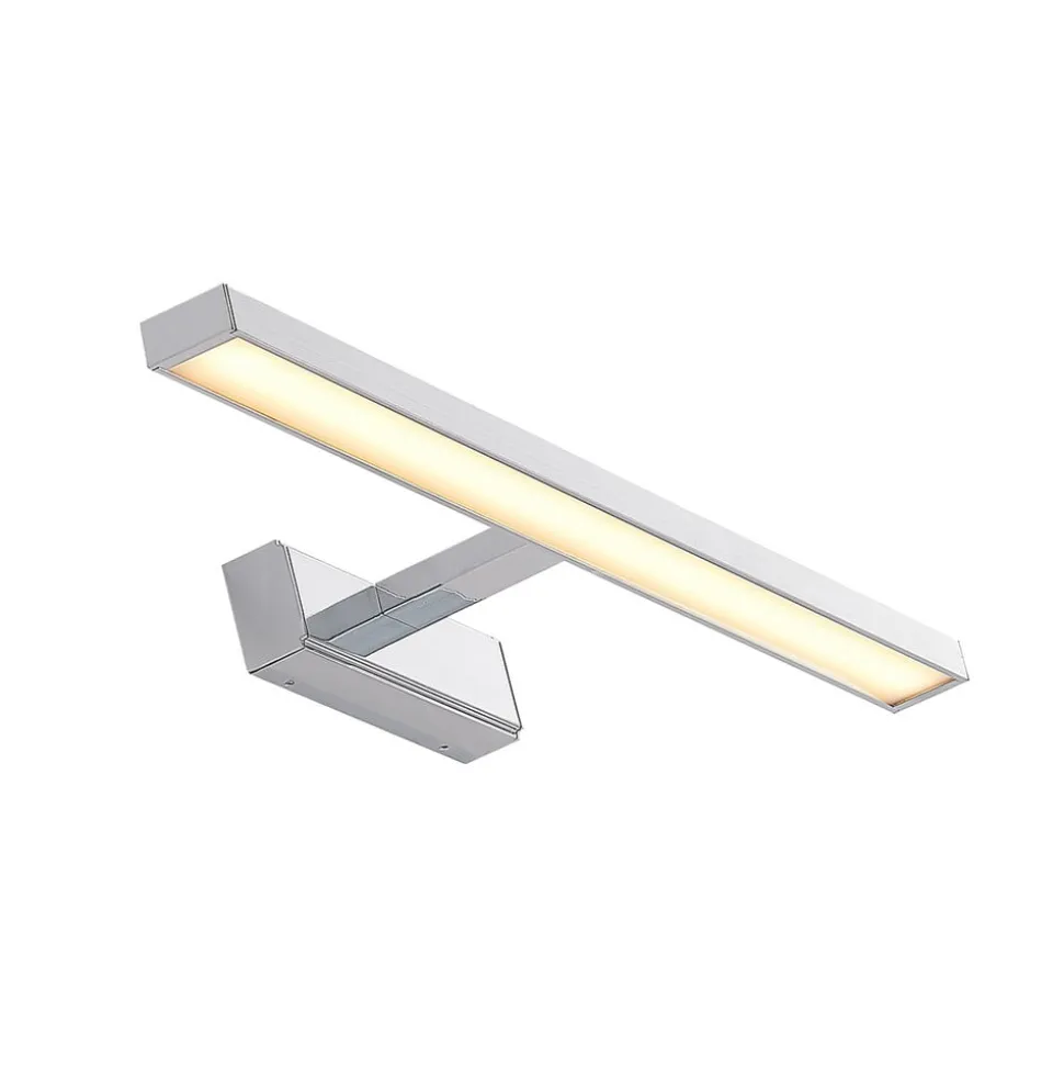 Praktisk LED-spejllampe Jukka, ideel til badeværelset Jukka LED-spejllampen har et moderne design og er ideel til belysning over spejle, f.eks. på badeværelset eller gæstetoilettet. Spejllampens nedadrettede lys giver tilstrækkelig lysstyrke til den daglige frisør eller barbering uden at blænde. De indbyggede LED’er udsender et blødt, varmhvidt lys, som også skaber en behagelig atmosfære i rummet.