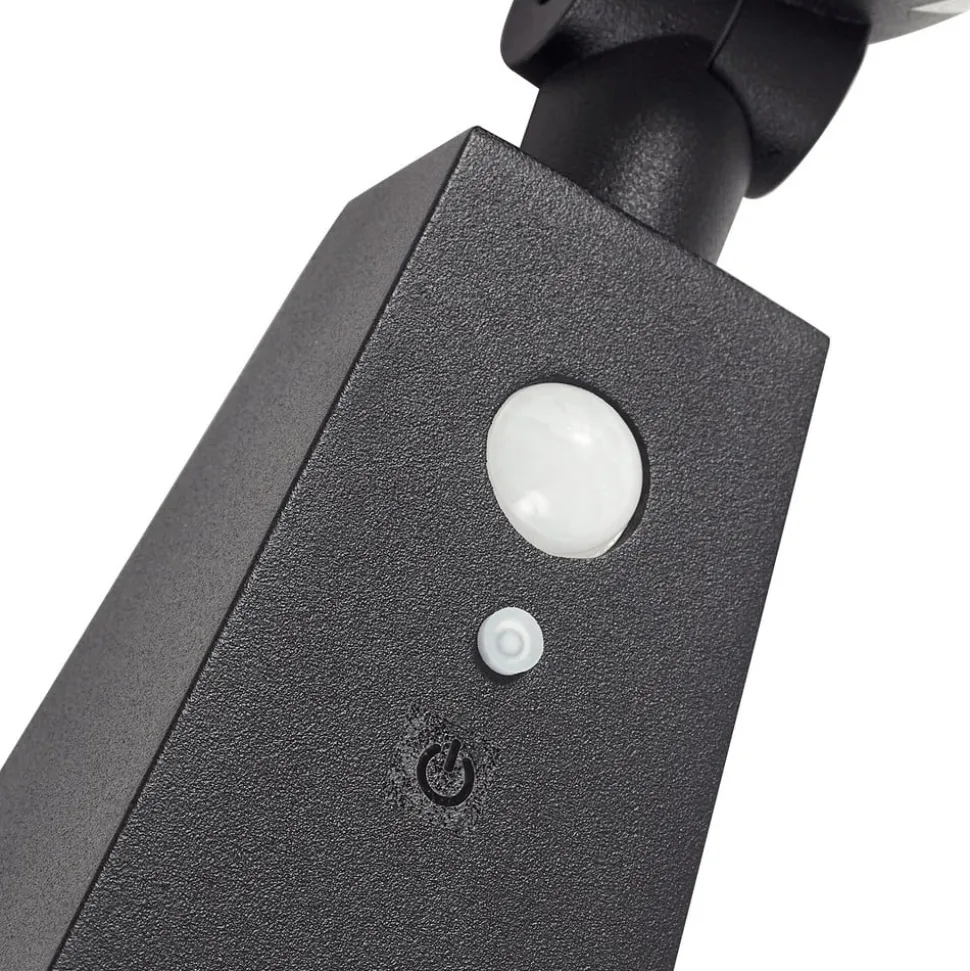 Raide LED-spotlight i sort trykstøbt aluminium – bevægelsesdetektor inkluderet Raide LED-spotlight kombinerer moderne design med funktionel ekspertise og tilbyder en integreret LED-lyskilde, der ikke kun er energieffektiv, men også har en høj kapslingsgrad på IP54. Det betyder, at den er beskyttet mod både støv og vandsprøjt, hvilket gør den til et ideelt valg til udendørs brug. Tekniske data – Batteri: 3,7V 2.200mAh lithium-ion – Solpanel: 5V monokrystallinsk – Registreringsområde bevægelsessensor: 3-5m – Registreringsvinkel bevægelsessensor: 50-110°