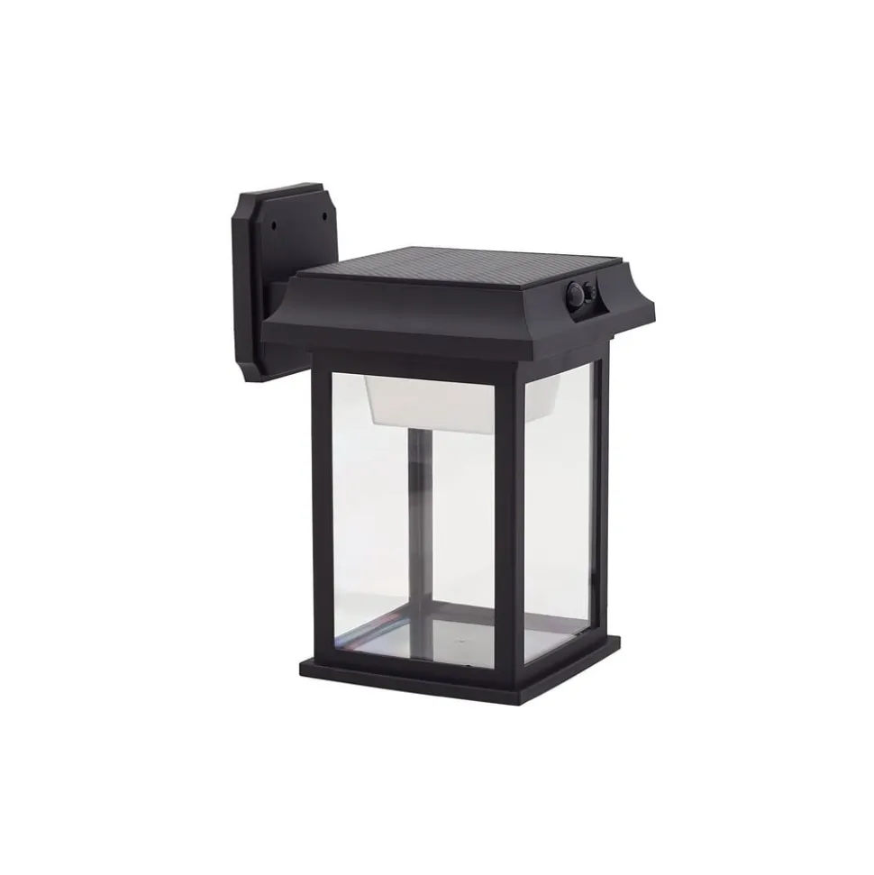Sort Latarka LED-væglampe af plast og glas – med praktisk bevægelsessensor Latarka LED-væglampen er kantet og sort. Den er lavet af plast og glas og har en praktisk bevægelsessensor. Den er ideel til en terrasse. Latarka har tre tilstande, hvor den kan lyse op. Tilstand 1: Lyset lyser med medium lysstyrke om natten og slukker om dagen. Tilstand 2: Lyset tændes 15 sekunder efter, at der er registreret bevægelse, og skifter derefter til medium lysstyrke. Tilstand 3: Lyset lyser i 15 sekunder, efter at der er registreret bevægelse, og slukker derefter igen. Tekniske data – Sensorens registreringsområde 6 m – Sensorens registreringsvinkel 120° – Optimal installationshøjde 1,5 m – 2 m – Monokrystallinsk silikonesolpanel (13,6 cm x 13,6 cm x 0,2 cm) – 3,7 V 3600 mAh Li-ion-batteri