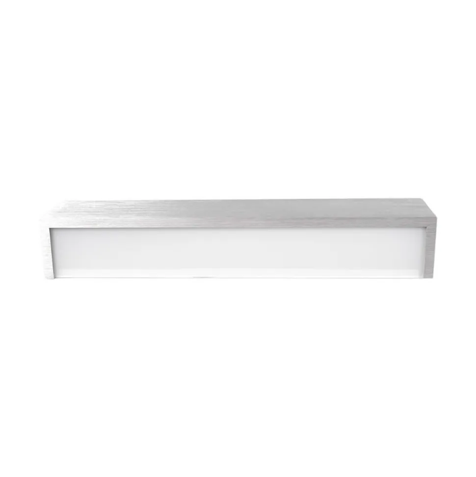 Bred væglampe i aluminium Ranik med børstet overflade Ranik er en særlig moderne lyskilde, da dens design næppe kunne være mere enkelt og puristisk. Det er simpelthen en aluminiumskubus, der danner skærm for den LED-væglampe. Hvor LED’erne er placeret, er der en glasplade som dæksel for at beskytte pæren. Da Ranik er i stand til at lyse i en varmhvid farvetemperatur, er det lys, der skabes her, usædvanligt hyggeligt. Det kan skabe en særlig hygge – også hvis du foretrækker en moderne boligstil!