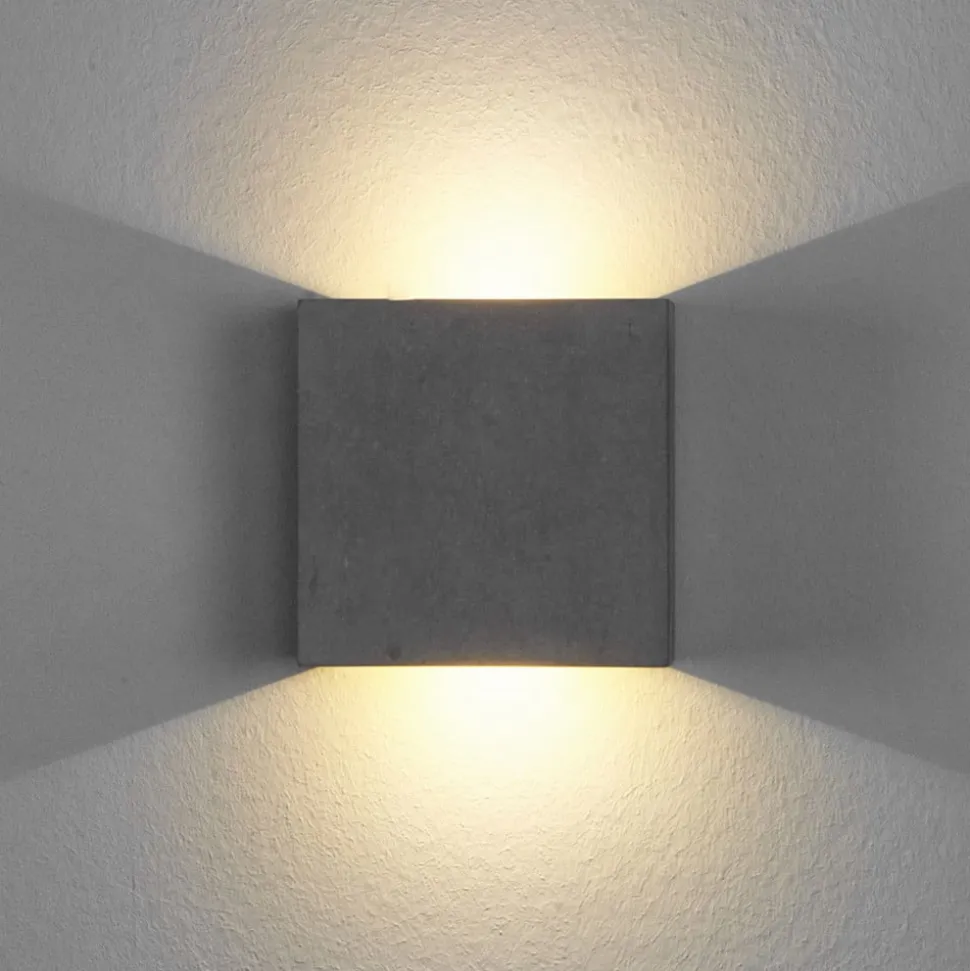 Lindby LED-væglampe Yva, grå, beton, 13 x 13 cm, op/ned