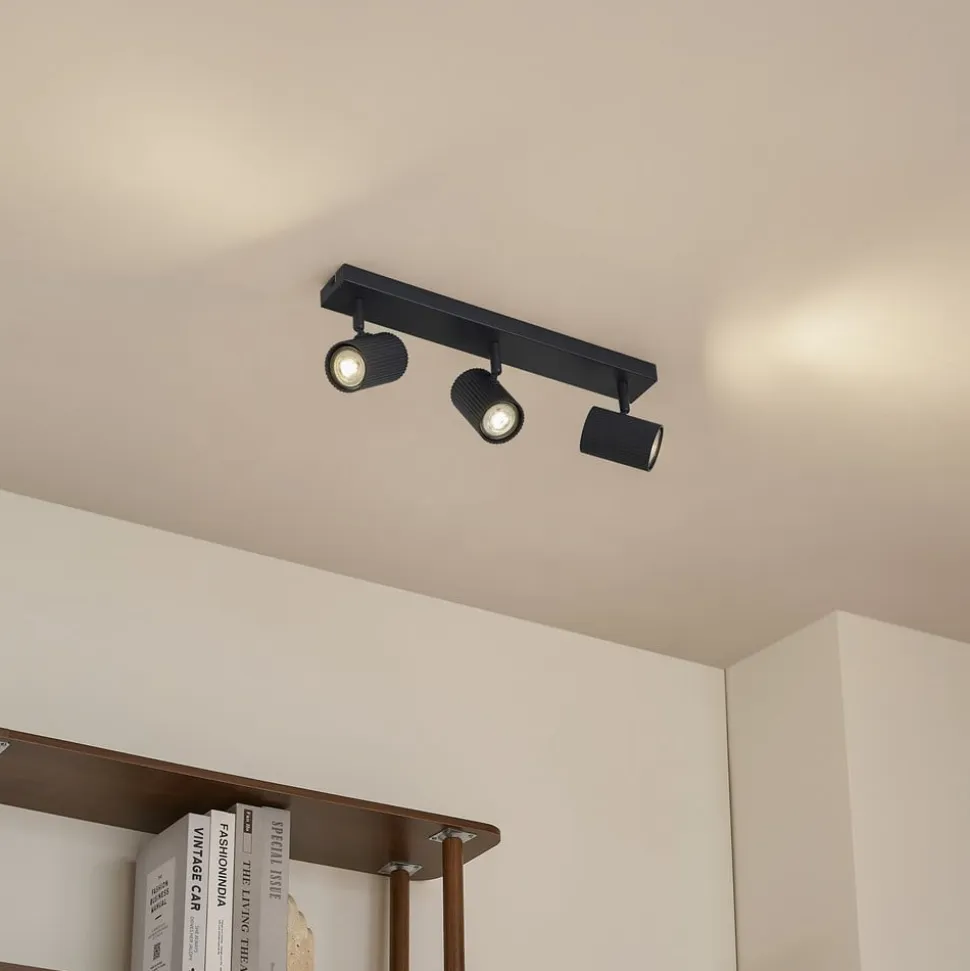 Loftlampen Kardis imponerer med sit moderne design og brugen af højkvalitets aluminium og jern. Konstruktionen med 3 lyskilder sikrer en jævn belysning, der skaber en behagelig atmosfære både i entreen og i stuen. Den mørkegrå farve giver lampen en tidløs elegance, der passer perfekt ind i forskellige indretningsstilarter. De enkelte spotlights kan justeres efter behov, så bestemte områder eller genstande kan belyses målrettet.