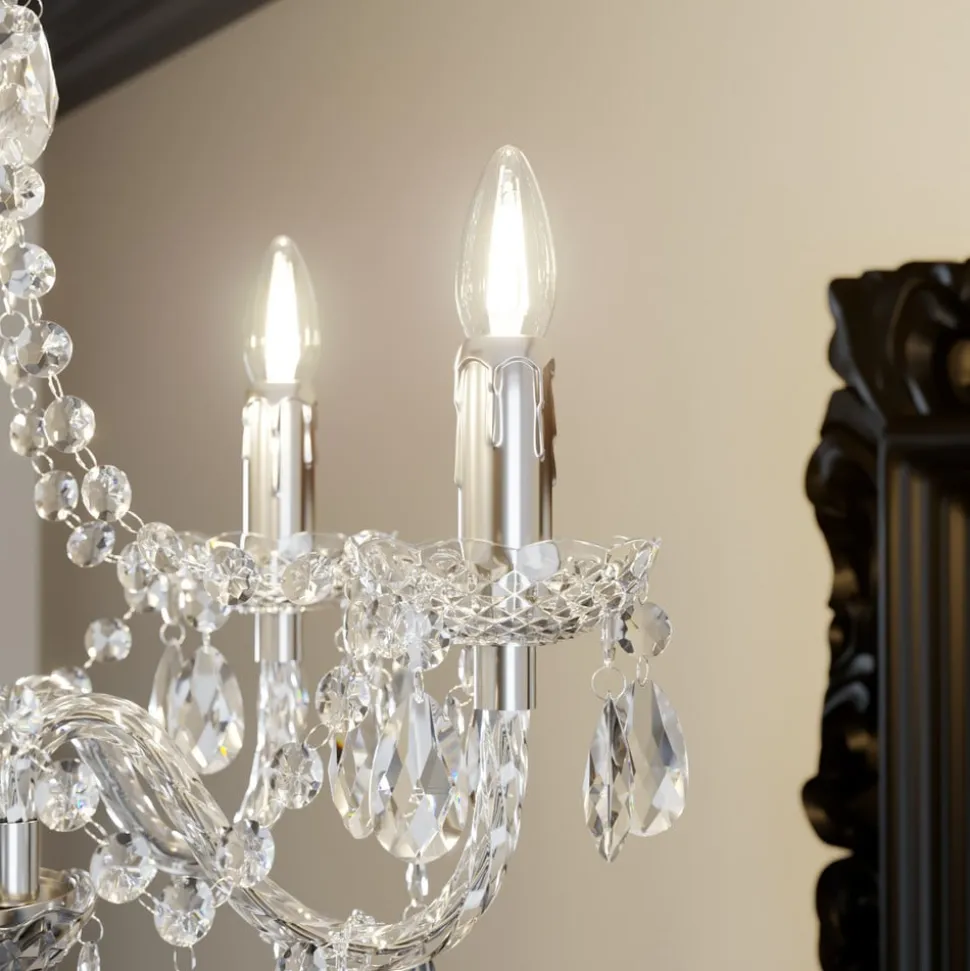 Funklende Merida lysekrone med glamourøst ophæng Lysekronernes historie går langt tilbage i de sidste århundreder – til tider, hvor der ikke var tale om elektrisk belysning. Dengang blev de for det meste betjent med stearinlys, selv om installation og ibrugtagning med traditionelle glødepærer og andre elektriske lyskilder naturligvis er meget sikrere og derfor næsten udelukkende foretrækkes i dag. Selv om lysekroner kan se tilbage på en så lang historie, synes vi næsten ikke at have fået nok af dem, da de er i stand til at give en storslået gnist og glitter, der aldrig undlader at fascinere og forføre som næsten ingen anden lyskilde. Merida lysekronen er en lysekrone med sådanne dimensioner, at den også nemt kan integreres i private opholdsrum. Skærmen er lavet af klar akryl med en poleret overflade og skaber den velkendte gnist, så snart den kommer i kontakt med lys, og reflekterer lysstrålerne med en glamourøs effekt. Merida er derfor en varig og effektiv tilføjelse, ikke mindst i spisestuen, hvor den får stemningen til at fremstå et par nuancer mere sofistikeret.