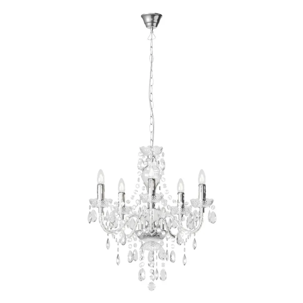 Lindby lysekrone Merida, krom, metal, 5 lyskilder, Ø 52 cm