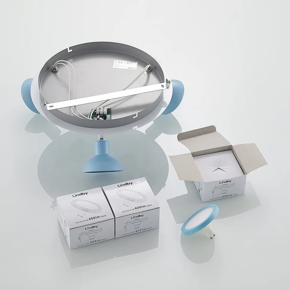 3 lyskilder Roxas loftlampe til børneværelset i blå med piratdesign Roxas er en loftlampe med et sjovt look og leveres også med inkluderede pærer, der er dæmpbare med hensyn til lysstyrke. Lyset kan tændes og slukkes som normalt med en vægkontakt. Takket være 3-trins dæmpningsteknologien med integreret slukfunktion kan den også dæmmes til tre forskellige lysstyrkeniveauer ved at trykke på kontakten flere gange: 100 %, 50 % og 3 %. Lampekroppen på Roxas loftlampe er lavet af blåt jern og er prydet med en trykt pirat, som afrunder det legende design. Loftlampen er derfor ideel til installation i børneværelser og skaber en munter atmosfære.