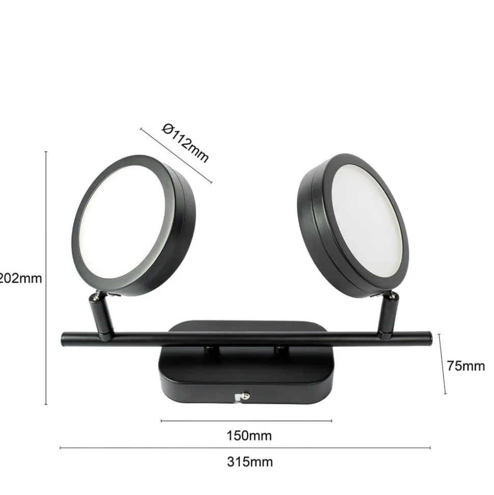 Neros spotlight i sort med justerbar lysfarve Neros leveres med to lyskilder, som kan justeres i lysfarve i to trin. Det eneste, du skal gøre, er at bruge den eksisterende lyskontakt, og så lyser spotlightet enten varmhvidt eller universalhvidt, alt efter hvad situationen på stedet kræver. Begge lyshoveder er flade og runde og kan drejes og svinges meget fleksibelt for at skabe det mest passende lysmønster. Den sorte overflade har et cool, moderne look og kan nemt kombineres med moderne møbler. Montering i loftet er ikke den eneste mulighed; vægmontering er også mulig. Takket være LED-teknologien i de indbyggede lamper er spotlightet også en særdeles effektiv lyskilde til opholdsrummet.
