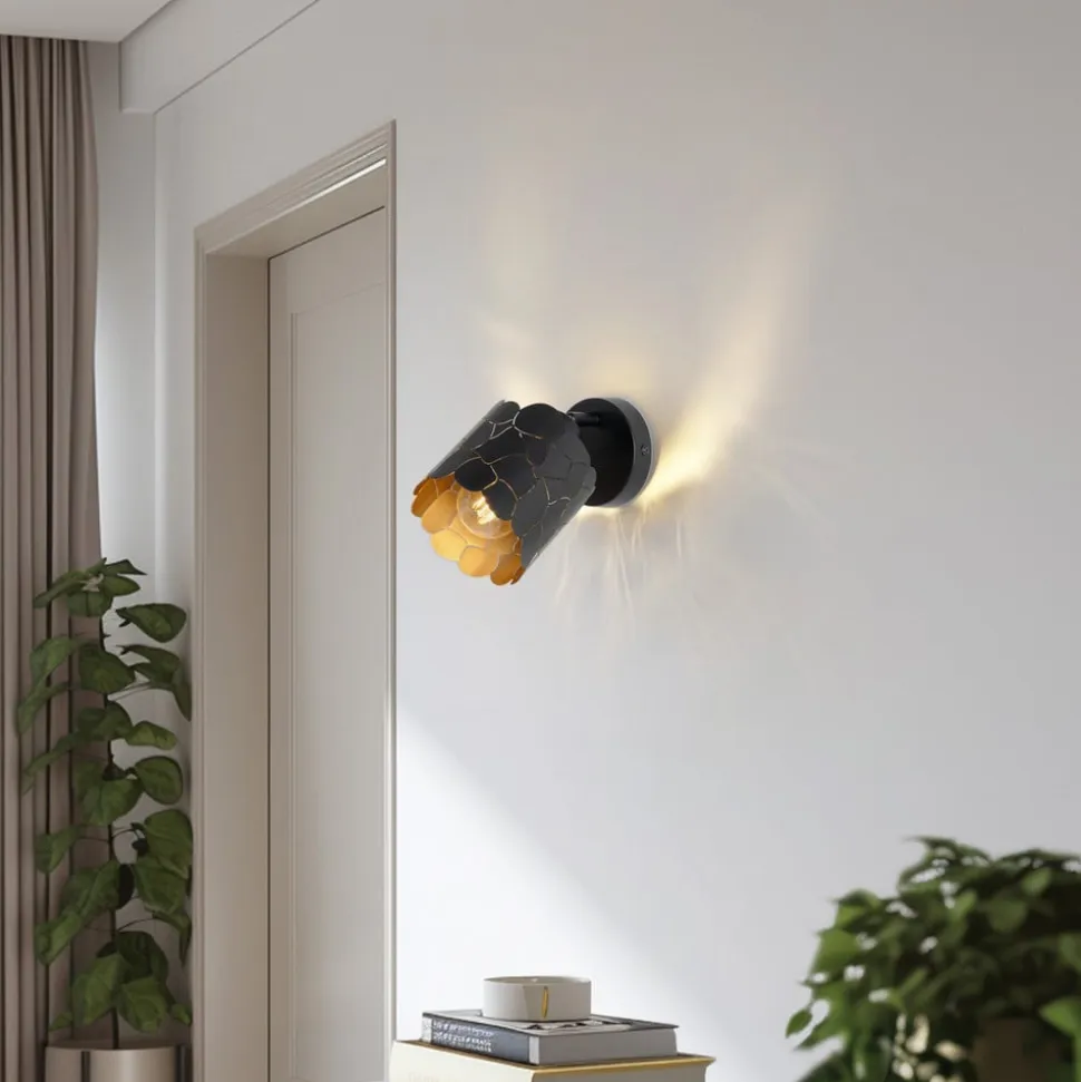 Aralena væglampe: moderne design møder elegance i sort og guld Aralena væglampen med sit spændende mønster er en stilfuld tilføjelse til enhver indretning, der kombinerer modernitet og elegance. Dens unikke design skaber en atmosfære, der er både hyggelig og inspirerende, og den er ideel til stuer, spisepladser og entréer. Kombinationen af sort og guld tilføjer et strejf af luksus til ethvert rum og sætter dygtigt accenter. Selvom der ikke medfølger en dæmper, kan væglampens lysstyrke justeres til individuelle behov ved at tilslutte den til en ekstern dæmper. Aralena væglampen er ikke kun et visuelt højdepunkt, men også en alsidig lyskilde, der kan indhylle rummet i forskellige stemninger – fra beroligende til stimulerende. Oplev, hvordan lysdesign ændrer boligatmosfæren og fascinerer på ny hver dag.