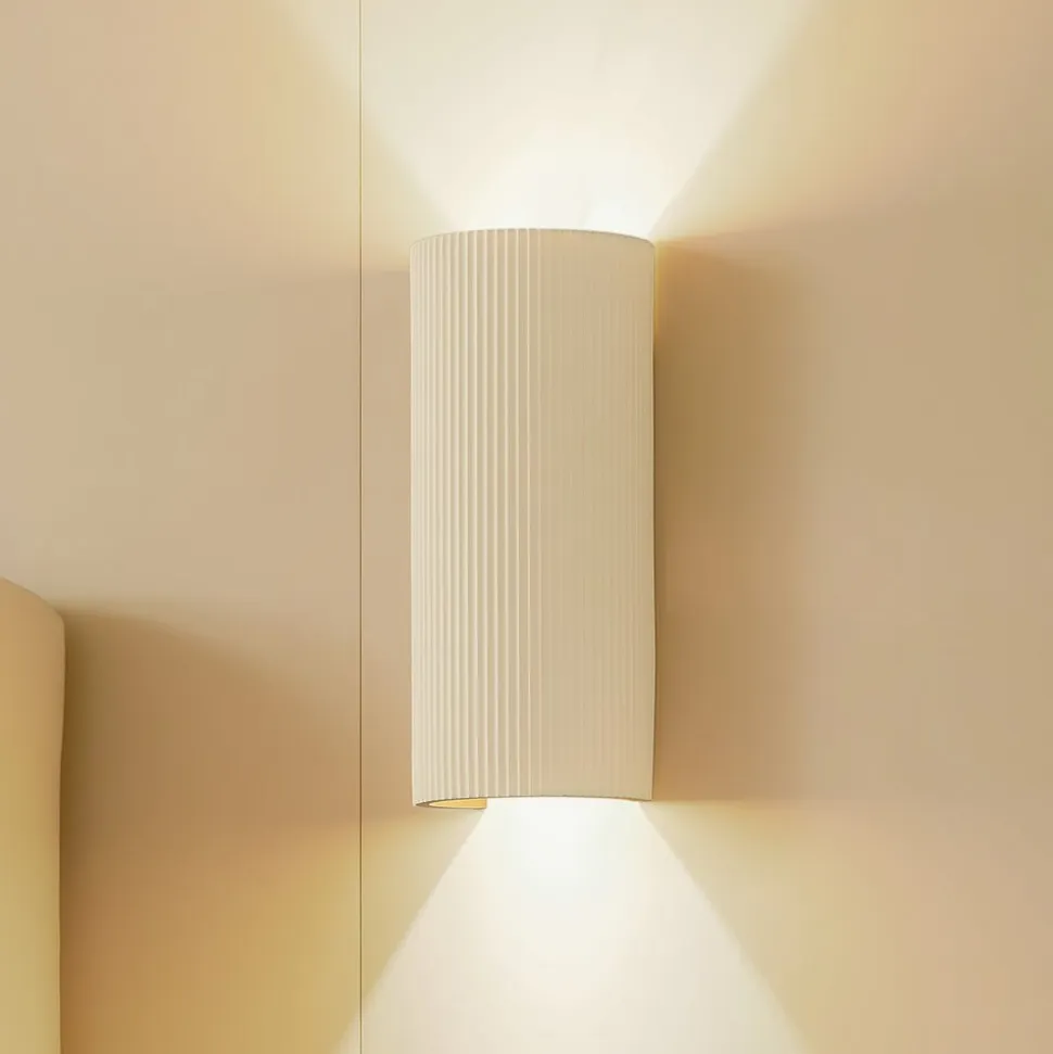 Væglampe Colja: Eleganse og stemning til indendørs rum Lygten har en lys overflade, der virker tidløs og kan kombineres på mange måder, mens materialets høje kvalitet sikrer lang levetid. Selvom der ikke medfølger en dæmpbar, kan Colja nemt styres via en ekstern dæmpbar, så lysintensiteten kan tilpasses efter individuelle ønsker og dermed skabe det rette lys til enhver stemning.