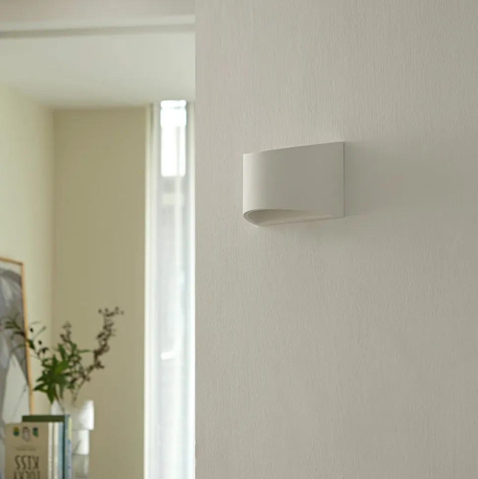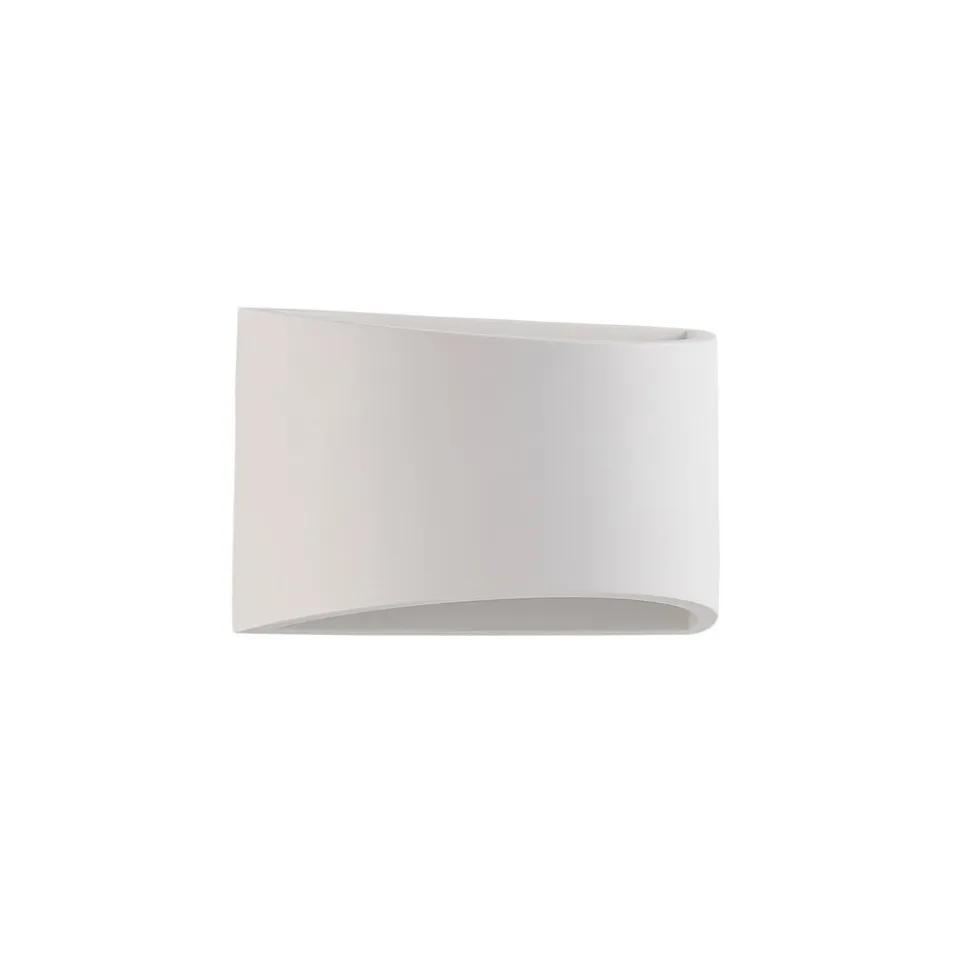 Heiko – hvid gips væglampe Denne væglampe udsender lys opad og nedad på en effektiv og frem for alt hyggelig måde. Selve lampekroppen har en halvcirkelformet form, som opfattes som tiltalende og attraktiv og kan kombineres med en række stilarter. Hvis du gerne vil matche væglampens farve, kan du trygt gribe til penslen, da gipsarmaturer er meget nemme at male over.