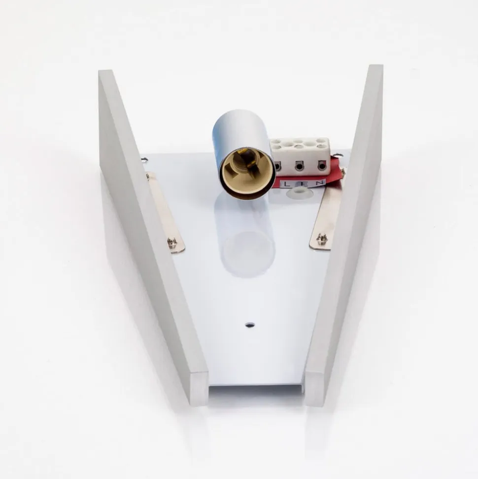 Magnus væglampe af glas og aluminium Denne væglampe imponerer med sit meget attraktive udseende: lampeskærmen af glas bliver bredere mod toppen og suppleres i siderne af to aluminiumselementer med en børstet overflade. Når den er monteret på væggen, ser Magnus derfor meget elegant og selvfølgelig ekstremt moderne ud. Den satiniserede glasindsats skaber en blød og varm lysfordeling, og takket være fatningen er der stort set ingen grænser for valget af lyskilde.