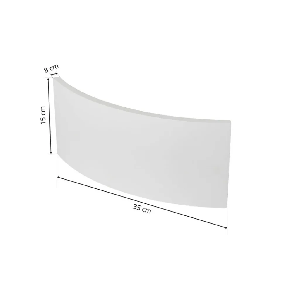 Enkel skærm i en buet form: væglampen Naike i gipsdesign Væglamper i gips er kendetegnet ved deres smukke hvide overflader i uberørt stand, som udstråler harmoni og kan bruges på mange forskellige måder. Dette kan også bekræftes for Naike væglampen. Men når vi taler om uberørt tilstand, bør vi også tale om den videre behandling, der er mulig. Naike væglampen i særdeleshed og gipslamper i almindelighed kan males eller farves. Væggen er malet i den seneste trendfarve, og der er stadig lidt maling tilbage i potten? Så er det bare at finde penslen frem igen og male lampen med! På den måde opnår man et farvematch til det overordnede koncept, som næppe ville have været muligt på normal vis, når man ved, at der findes millioner af farver, og det er næsten umuligt at finde en farve, man har valgt én gang, igen.