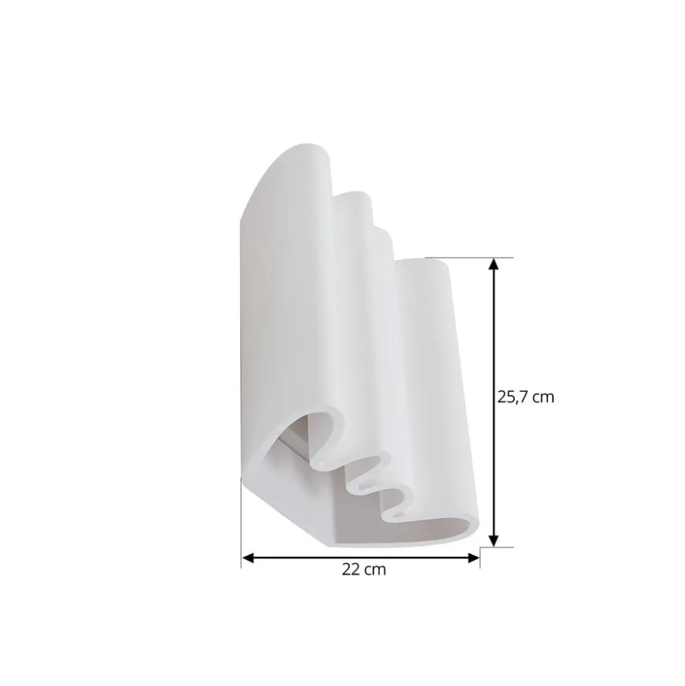 Novali væglampe – elegance og atmosfære til opholdsrum Novali væglampen i hvid, lavet af gips i høj kvalitet, giver et moderne og stilfuldt præg til enhver stue, spisestue, soveværelse eller gang. Dens rene design passer perfekt ind i moderne interiør og skaber en atmosfære, der spænder fra afslappende til energigivende, afhængigt af dine behov. Selvom dette armatur ikke er udstyret med en integreret dæmper, kan det nemt kombineres med en ekstern dæmper for at regulere lysstyrken individuelt og tilpasse lysstemningen perfekt til enhver situation. Oplev, hvordan Novali væglampen kan ændre stemningen i dine rum og skabe en fascinerende lysoplevelse.