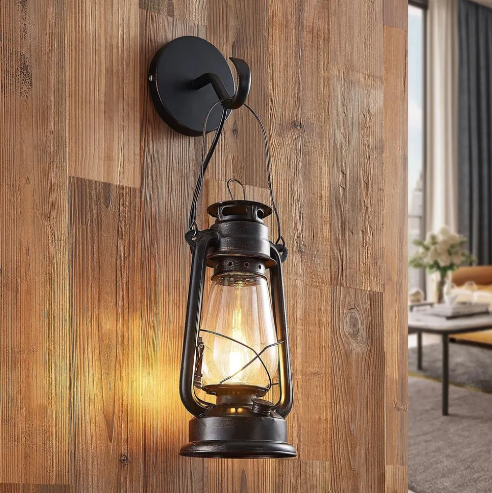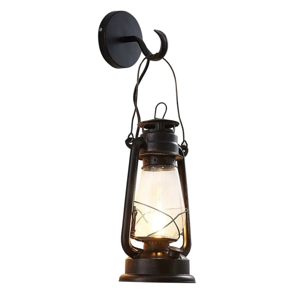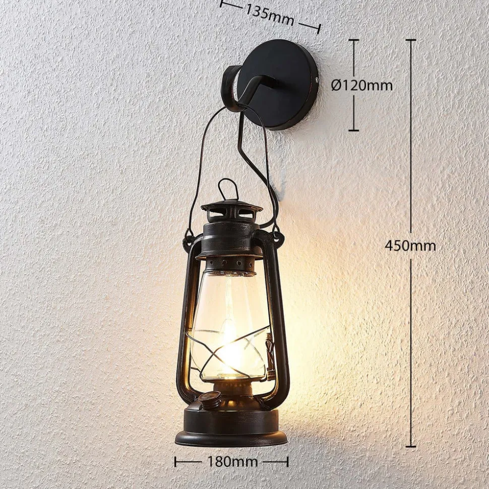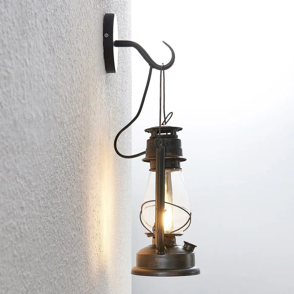 Lindby væglampe Raisa, rustfarvet, metal, lygte, E14