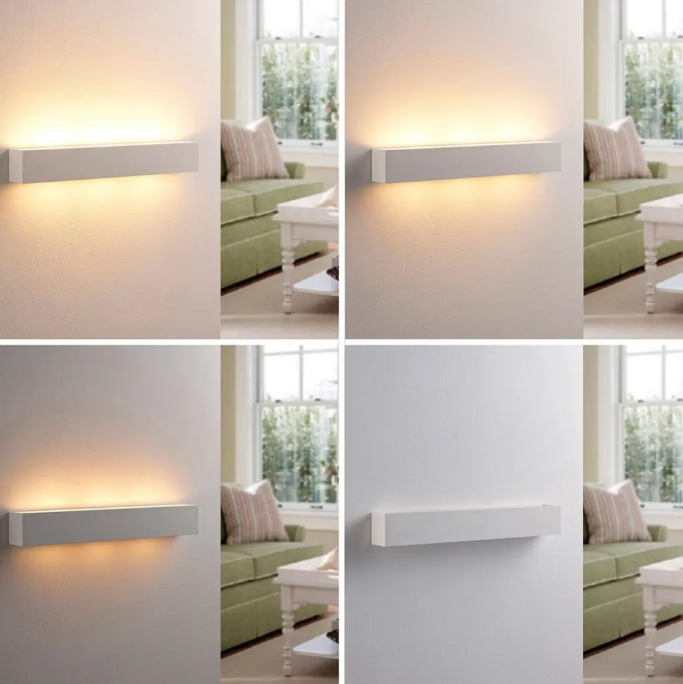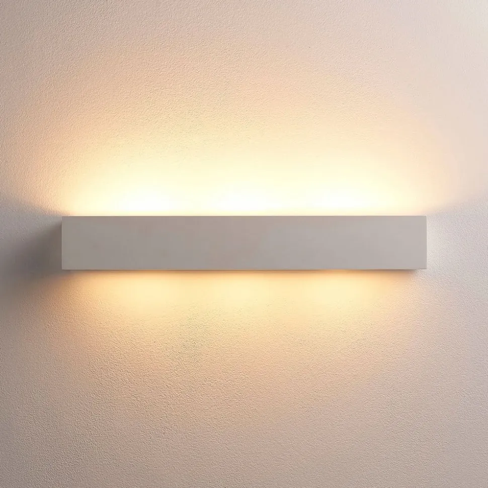 Malbar Tjada væglampe af gips Tjada er kvadratisk og giver et vidunderligt hyggeligt lys, som er perfekt til at fremhæve opholdsrum. Takket være den hvide gipsoverflade kan den kantede væglampe også males eller – hvis du er lidt af en kunstner – endda farves! Det giver dig mulighed for at tilpasse udseendet på mange måder, men lysbilledet forbliver altid det samme.