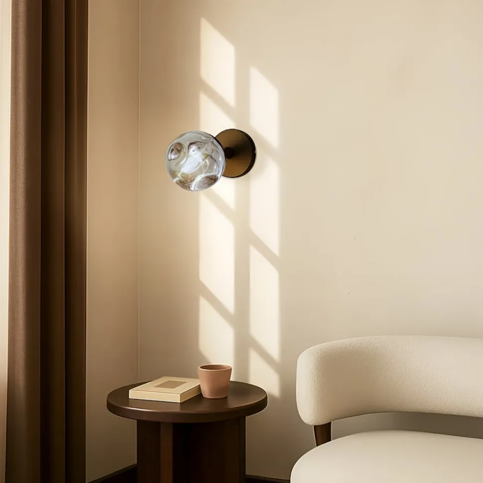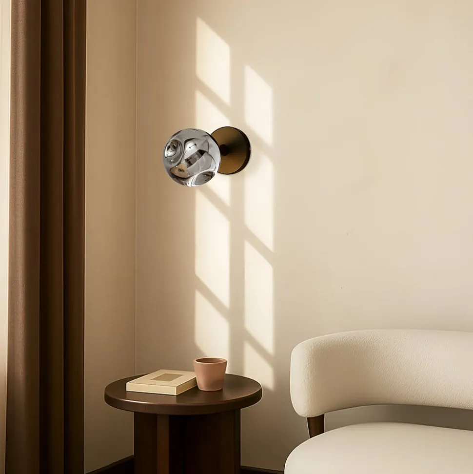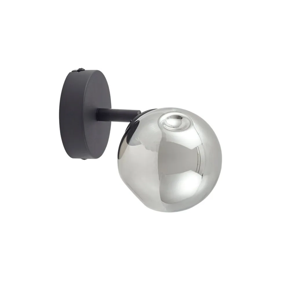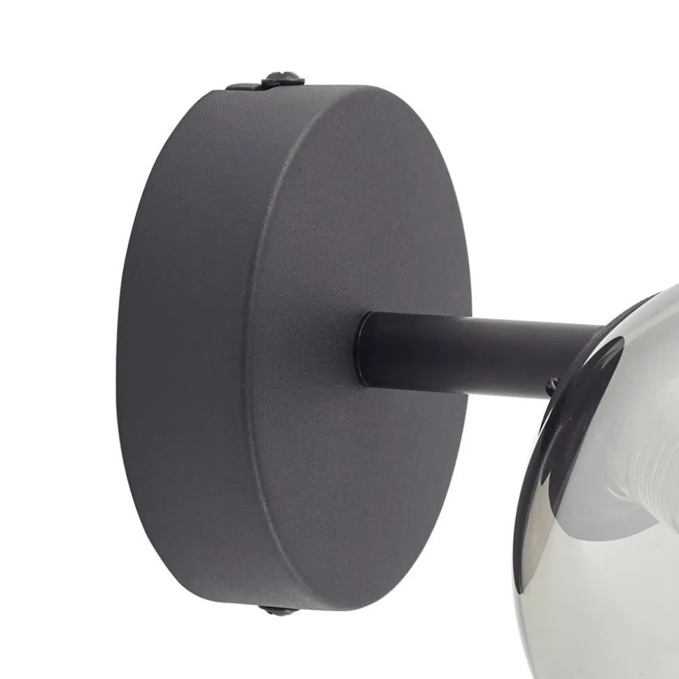Lindby væglampe Valentina, grå/sort, glas, Ø 10 cm