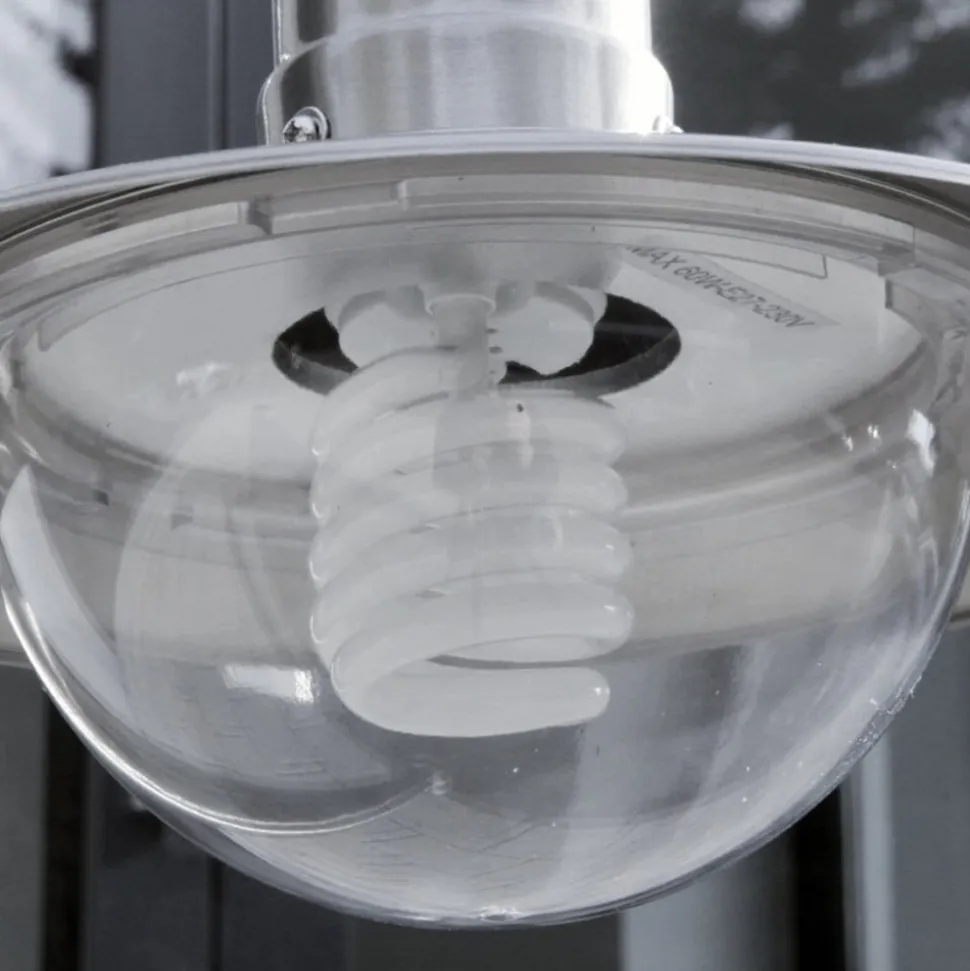Damion vejlampe virker lidt legende med sit buede stel og den halvrunde, nedadrettede polycarbonatskærm, der giver frit udsyn til pæren. Den stilfulde lampe i stål er velegnet til belysning af indkørsler og indgangsområder samt stier og trapper i offentlige parker eller i haven.