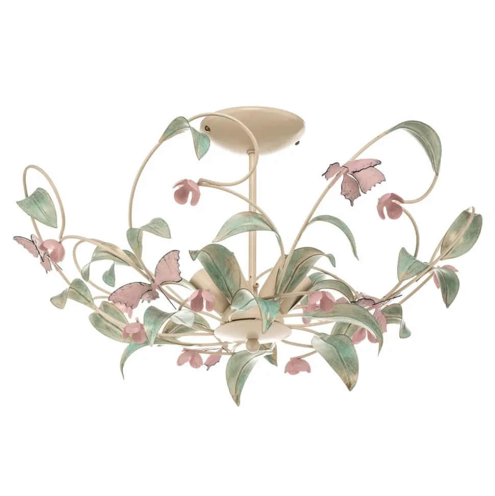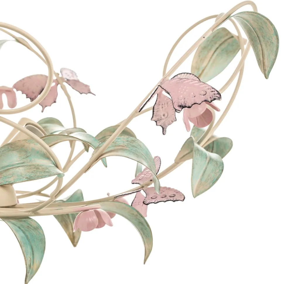 Loftlampen BUTTERFLY forener florentinsk charme med moderne funktionalitet. Den er fremstillet af rustfrit stål og plast i høj kvalitet og imponerer med sin harmoniske farve i creme, grøn og rosé. Denne lampe med 5 lyskilder er et sandt højdepunkt til stuer og soveværelser samt til entreen og spisestuen. Muligheden for at dæmpe lyset med en ekstern lysdæmper giver fleksibilitet i lysdesignet og skaber en individuel atmosfære.