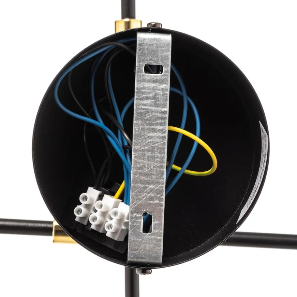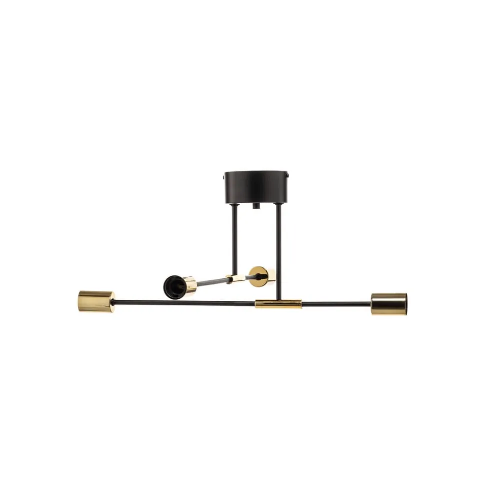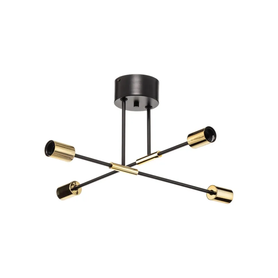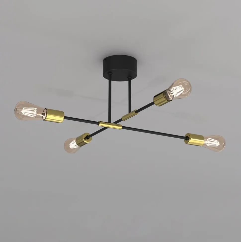 Loftlampen Ilia i sort og guld forener moderne design med funktionel alsidighed. Den er fremstillet af højkvalitetsstål og udstråler en tidløs elegance, der passer perfekt ind i forskellige boligområder som stuen, entreen, køkkenet og spisestuen. Konstruktionen med 4 lyskilder giver en jævn belysning og sætter stilfulde accenter i ethvert rum.
