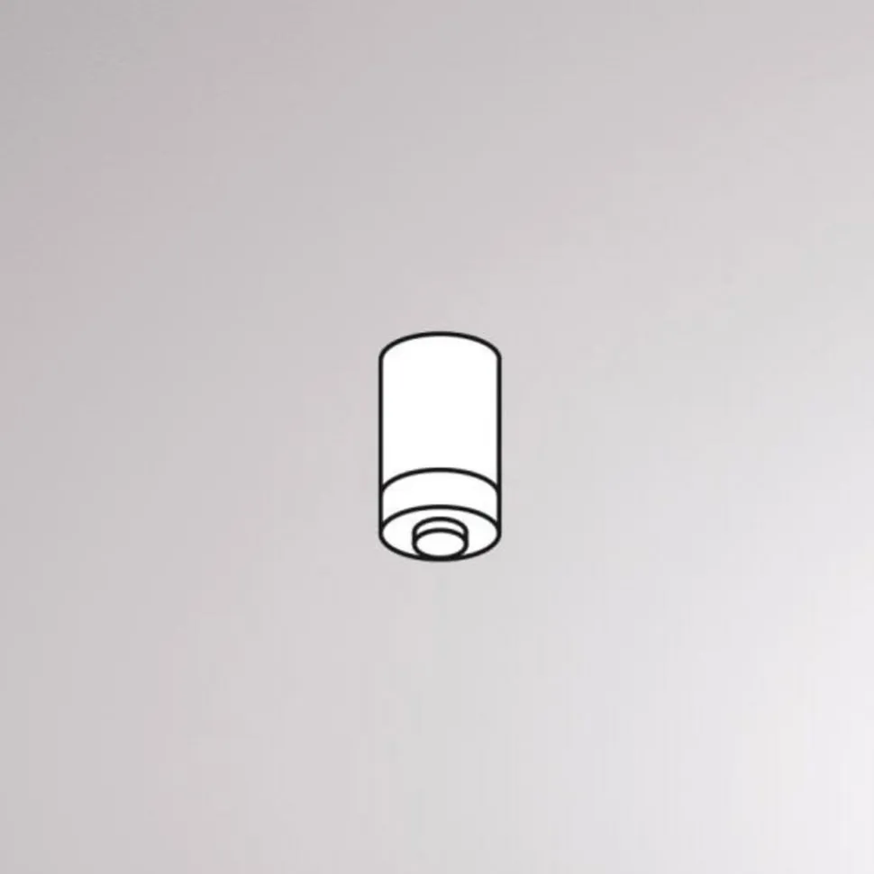 Den diskrete, runde loftsfastgørelse er en del af Volare 2-fase skinnesystemet og muliggør overflademontering af skinnerne under loftet.