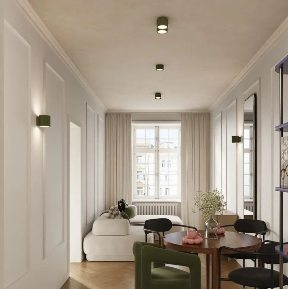 Loftlampe RIBLA overbeviser med sit tidløse design og den høje kvalitet i aluminium. Den olivengrønne farve giver ethvert rum et særligt præg og passer harmonisk ind i forskellige indretningsstilarter. Takket være den kompakte konstruktion er lampen ideel til brug i stuer og spisestuer, entreer eller køkkener.