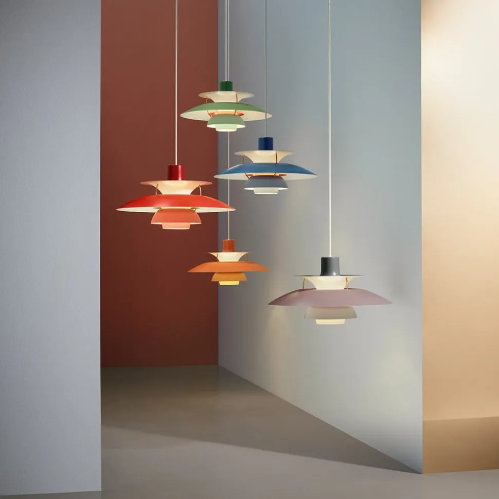 Den tredobbelte skærm, som pendlen er udstyret med, går tilbage til Poul Henningsens design, den velkendte danske designer, der skabte produkter for Louis Poulsen fra 1925 til sin død i 1967. Louis Poulsen er en dansk virksomhed med en lang tradition for fremstilling af designerlamper, som blev udviklet efter princippet om, at “form følger funktion”. Louis Poulsen har produceret typisk skandinaviske belysningsløsninger i over 100 år, og nogle modeller har været tilgængelige i årtier og bliver konstant genudgivet. 2018 markerer 60-året for PH 5’s fødsel. I den anledning er nye farvekombinationer af det klassiske armatur blevet lanceret på markedet.
