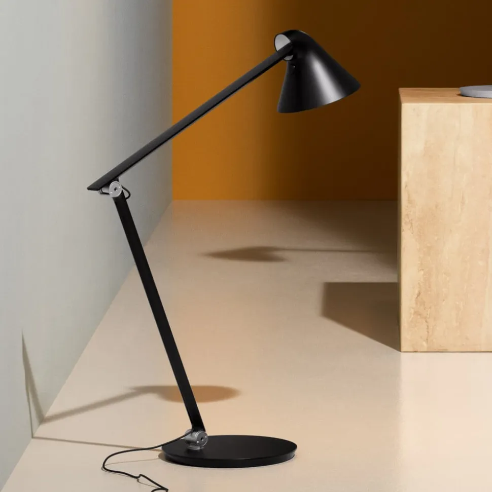 LED-skrivebordslampe NJP – alsidig, justerbar og kombinerbar På sidebordet i læsehjørnet i stuen, på skrivebordet på hjemmekontoret eller på biblioteket – NJP-skrivebordslampen er en fleksibel lyskilde af høj kvalitet til læse- og arbejdsbelysning. Det japanske designstudie nendo, som blev grundlagt af Oki Sato, lagde ved designet af NJP særlig vægt på blændfrit lys, et klart udseende og ukompliceret betjening – kort sagt funktionalitet. De to hængsler, som er placeret over stålfoden og centralt i den pulverlakerede aluminiumsramme, er særligt iøjnefaldende. De gør det muligt at justere højden og fremspringet. Skærmen giver en ekstra mulighed for at justere justeringen af lysudsendelsen. Den er malet hvid på indersiden for effektiv lysudsendelse. Kontakten på lampehovedet giver adgang til timerfunktionen (4 eller 8 timer) samt et to-trins valg af lysstyrke. Bordlampen er et produkt fra den danske producent Louis Poulsen, som siden grundlæggelsen i 1874 har opnået stor erfaring med produktion af armaturer af høj kvalitet; NJP er også fejlfrit realiseret.