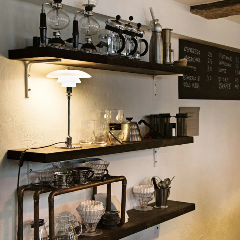 PH 2/1 bordlampe – en attraktivt designet ekstra lyskilde PH 2/1 bordlampen imponerer med sin tidløse skønhed, som fremhæver mange indretningsstile, samt en lysemission, som takket være det reflekterende treskærmssystem glæder med et højt lysudbytte med lys, der hovedsageligt er rettet nedad. Skærmene er lavet af tre lag mundblæst glas. Glasset skinner på ydersiden, mens indersiden har en mat sandblæst finish, der skaber en vidunderlig smuk lysatmosfære. Lampefoden og stativet er lavet af messing og har en finish af høj kvalitet, der yderligere understreger lampens elegante udseende. PH 2/1 bordlampen er designet af den danske designer Poul Henningsen, der arbejdede med belysningsfirmaet Louis Poulsen fra 1925 til sin død i 1967, og hvis livslange ambition var at designe blændfri armaturer.