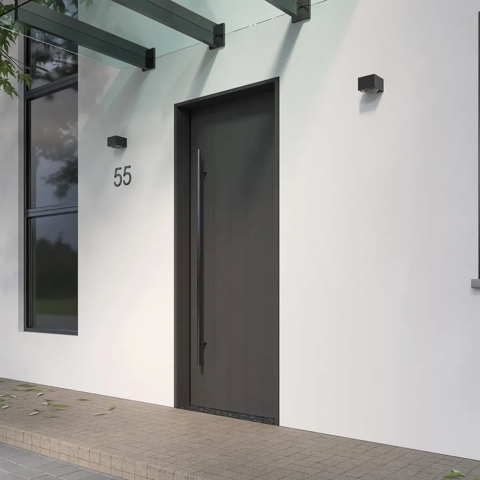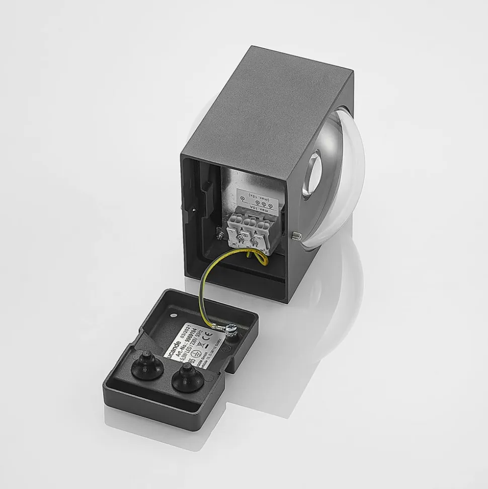 Mørkegrå LED udendørs væglampe Almos som en moderne oplysning og downlight
