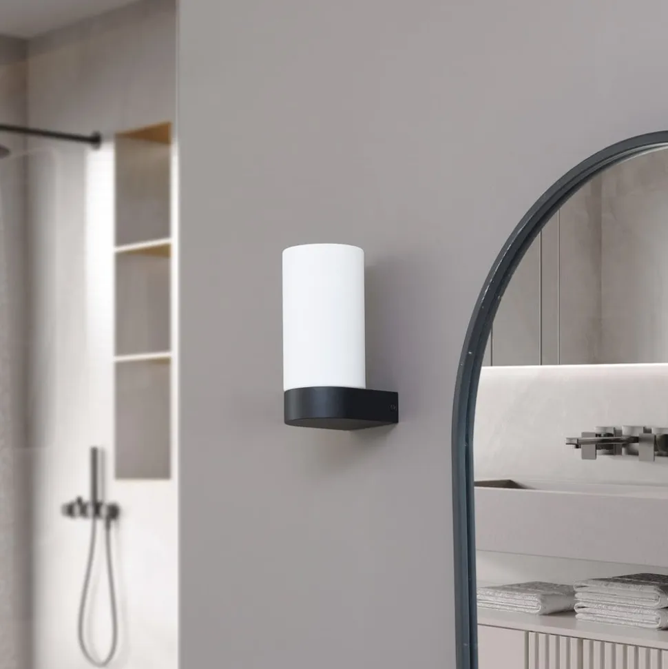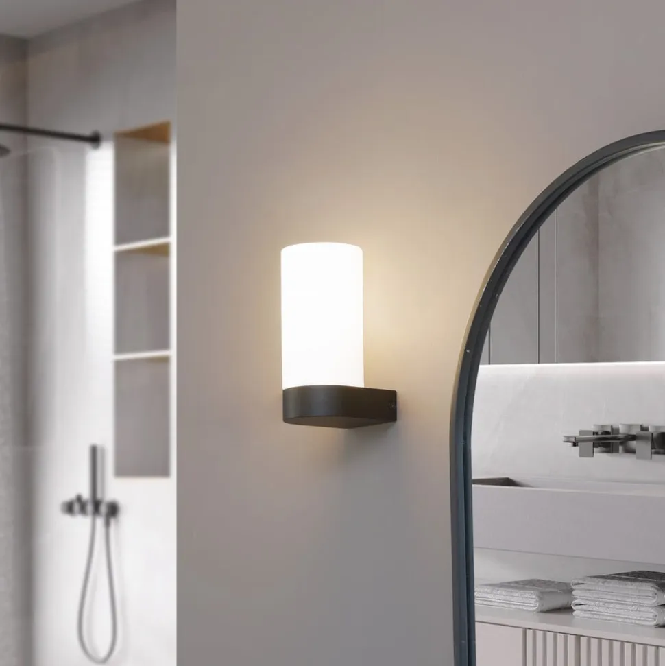 Cylindrisk Basolo-væglampe i glas til badeværelset Basolo-væglampen til badeværelset er det perfekte valg til et moderne badeværelse. Med sit stilfulde design og finish i høj kvalitet er den et blikfang i ethvert rum. Lyset er dæmpbart og kan derfor justeres individuelt til den ønskede stemning. En dæmper er dog ikke inkluderet. Kapslingsgraden IP44 sikrer sikker brug på badeværelset. Oplev et behageligt og klart lys, der vil påvirke dit humør positivt med Basolo væglampen til badeværelset.