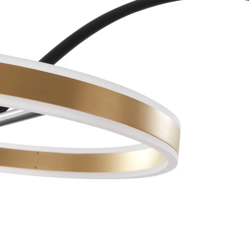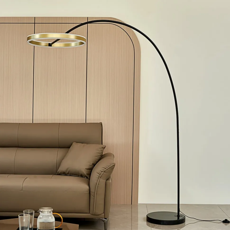 Messingfarvet LED-buelampe Yekta i en designorienteret form, dæmpbar via fodkontakten Yekta er et moderne og minimalistisk belysningsobjekt til moderne interiør, hvor hver bevægelse er perfekt, og man kan mærke det minimalistiske og gennemtænkte designsprog. LED-buelampen består af en rund base, en buet ramme og en moderne ringformet skærm, der kan vippes sidelæns ved hjælp af leddene. Skærmen er i en varm messingfarve og bløder armaturets udseende op på en behagelig måde. Hvis du vil justere lysstyrken, er alt, hvad du behøver, fodkontakten i forsyningskablet, som kan bruges til at ændre lysstyrken i tre trin. 3-trins dæmpbar + slukket: Kontakten gør det muligt at tænde og slukke lyset, som du plejer. Takket være 3-trins-dæmpningsteknologien med integreret slukfunktion kan den også dæmmes til tre forskellige lysstyrkeniveauer ved at trykke på kontakten flere gange: 100 %, 50 % og 15 %.