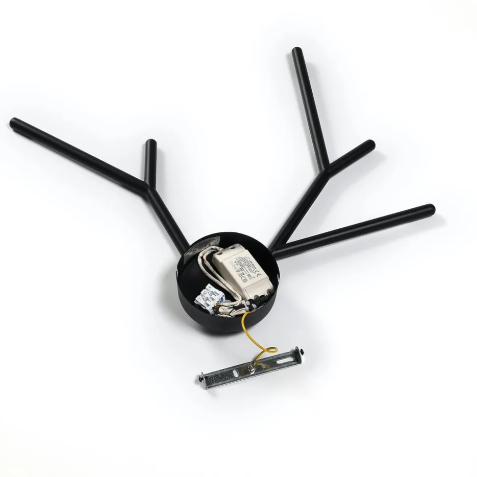 LED-væglampen Cuerno blev designet i form af et gevir. Væglampen lavet af metal med en mat sort finish og polycarbonat bliver en ekstraordinær blikfang på en væg, det er den moderne fortolkning af et jagtpokal, og i modsætning til et sådant trofæ giver det også lys.