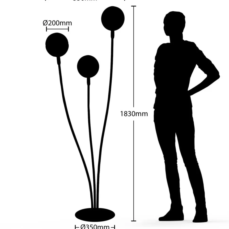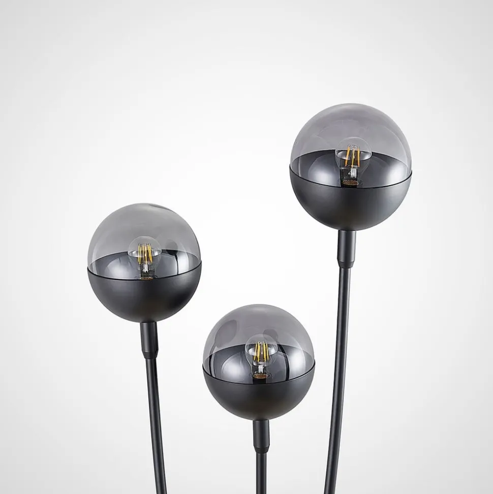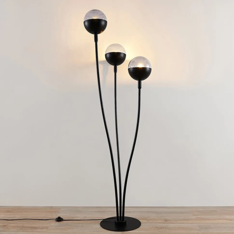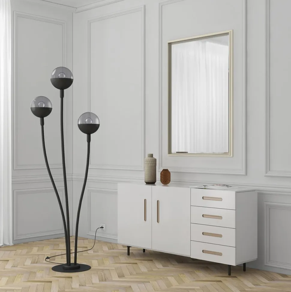 Gulvlampen Dustian med 3 lyskilder med markant design og lyskugler halvt af glas