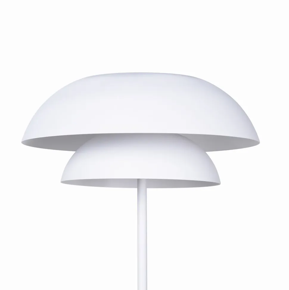 Elegant Kellina gulvlampe i en enkel hvid farve Kellina gulvlampen har en diskret overfladefinish og en ekspansiv dobbeltskærm, der straks fanger øjet. Den ligner et rigtigt designermøbel og kan bruges både i hjemmet og i hotel- og restaurationsbranchen. Jernstellet og den runde base giver en stabil støtte, mens den let nedadbøjede lampeskærm fungerer som et elegant blikfang og gør denne lampe til et særligt tilbehør til hjemmet. Brugeren kan montere lampen med en hvilken som helst egnet pære, hvorved lyset hovedsageligt udsendes nedad for at minimere risikoen for blænding.