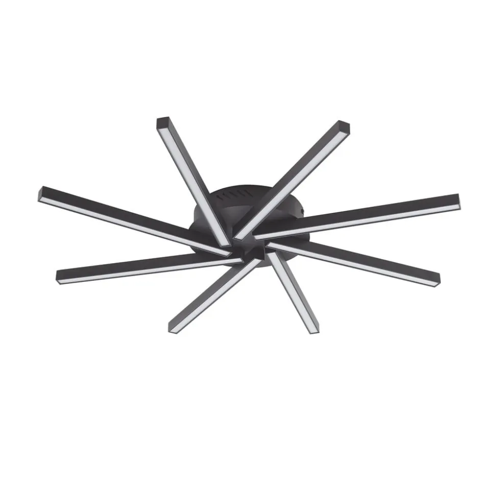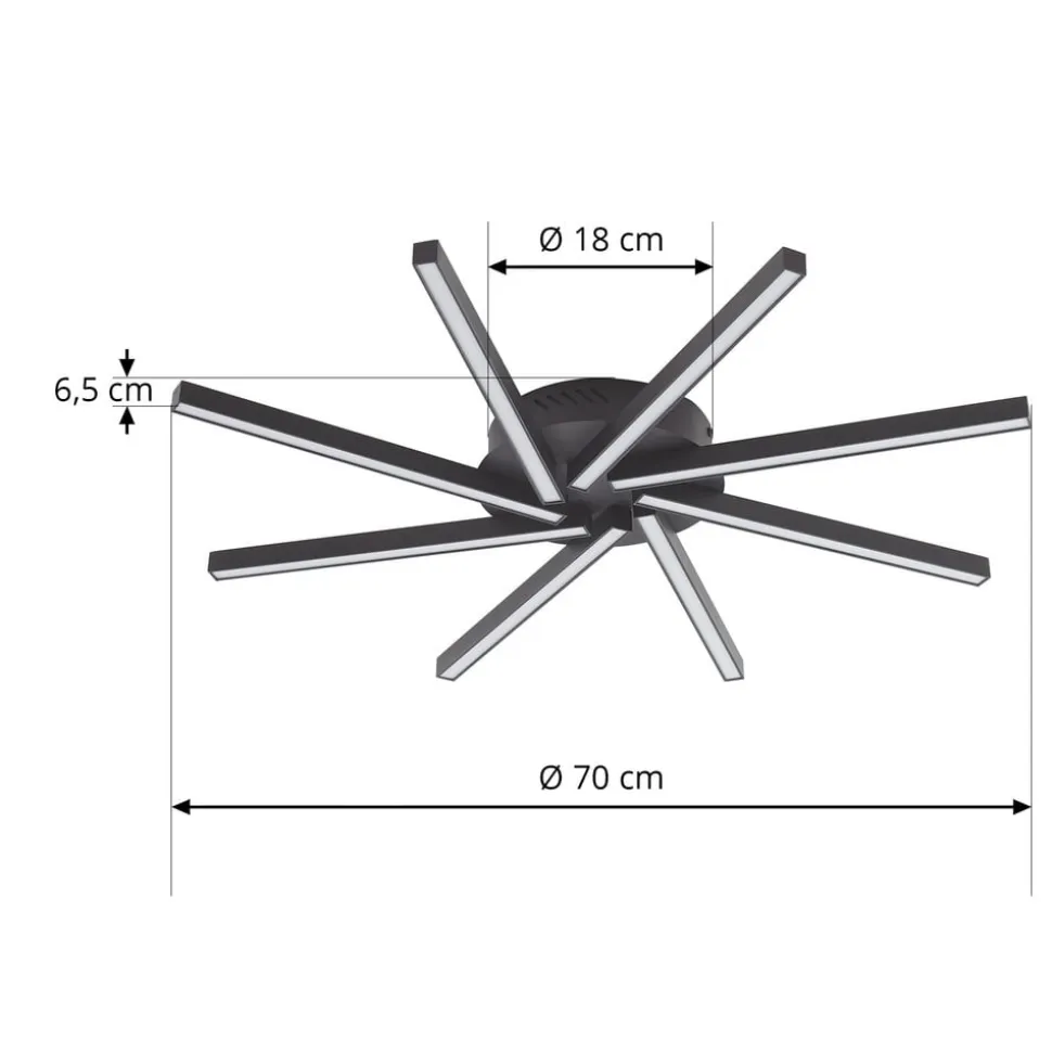 Tjado otte-lys LED-loftslampe med lysdæmperfunktion Denne loftslampe er det perfekte valg til dine fire vægge. Lampen supplerer dit personlige indretningskoncept takket være dens enestående udseende og er også et fantastisk dekorativt element, når den er slukket. Takket være dæmpningsmuligheden (10 %, 50 % og 100 %) kan du også bruge en vægkontakt til at skabe en hyggelig og behagelig belysning. Takket være den varme, hvide lysfarve får dit opholdsrum en fantastisk stemning. Loftslampen er sort i farven. Med sit smukke design passer denne flotte loftslampe perfekt ind i din indretningsstil og skaber en hyggelig atmosfære. En overbevisende boligfølelse og et smagfuldt design kendetegner denne lampe i Lucande-mærkets sædvanlige kvalitet. Det overordnede udseende af dit interiør vil blive beriget af lampen, som hurtigt har fundet det rigtige sted. Denne lampe udstråler en vidunderlig atmosfære.