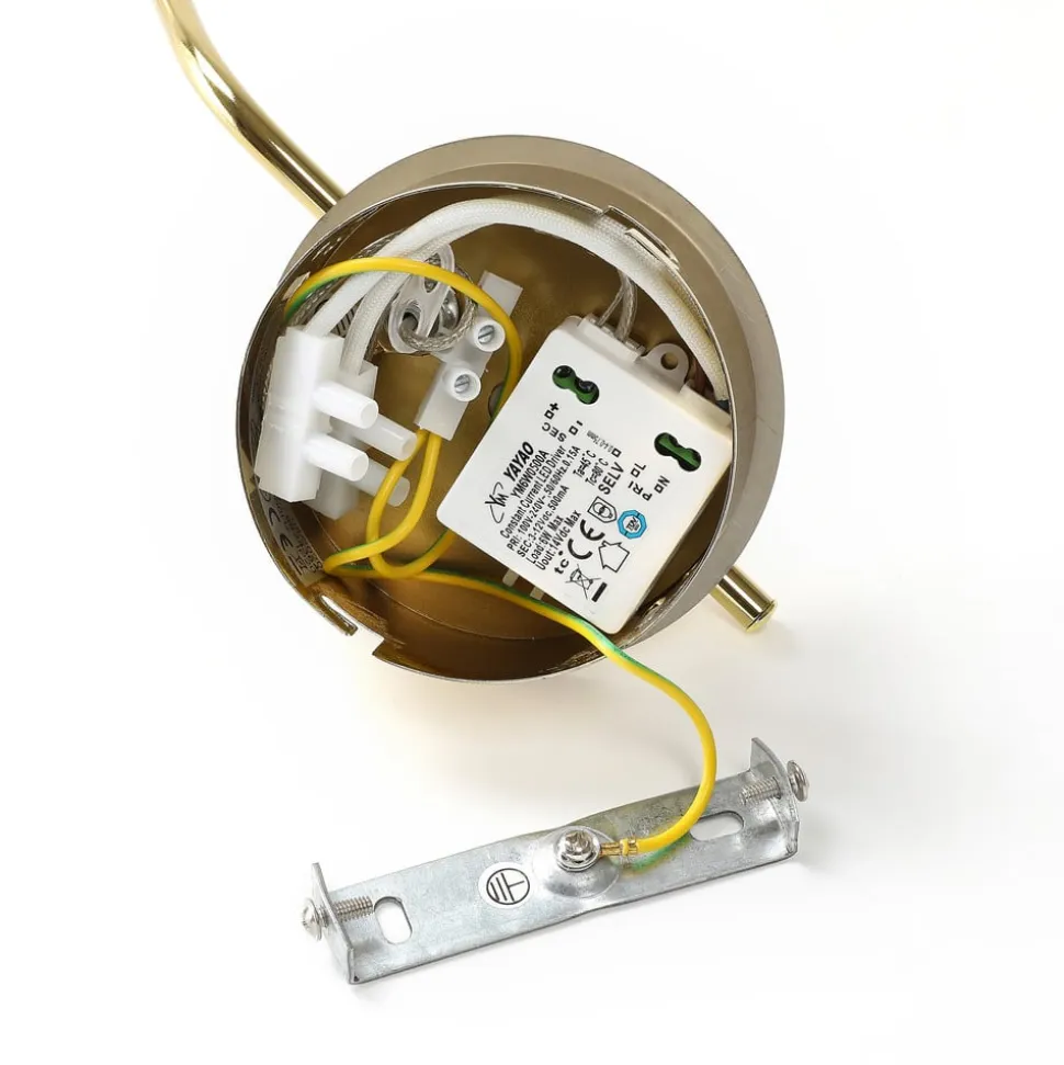 Spotlight smukt lys med den guldfarvede Hayley LED-væglampe med klar glaskugle Hayley er et meget iøjnefaldende belysningsobjekt, der er attraktivt både med hensyn til sit udseende og sit lysmønster. Glaskuglen er klar og har en virkelig smuk boblestruktur, der skaber særlige effekter. I den nederste del supplerer et metalelement kuglen, som er i en skinnende guldfarve og derfor matcher overfladen på stellet og lampearmen. Denne arm er vinklet, og et kabel løber nedad for enden og ender i lampeskærmen som en hængelampe. Det gør væglampen til et meget iøjnefaldende belysningsobjekt, som ikke mangler glitter og glamour.