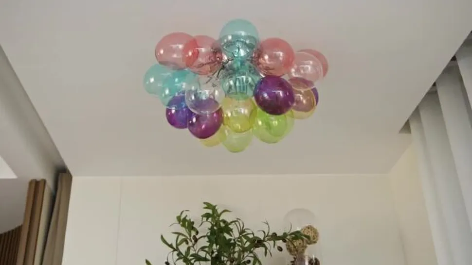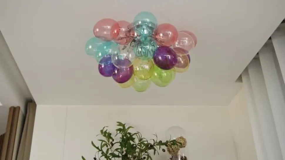 Farverig loftlampe Diborah i markant design med glaskugler