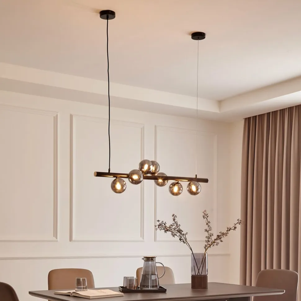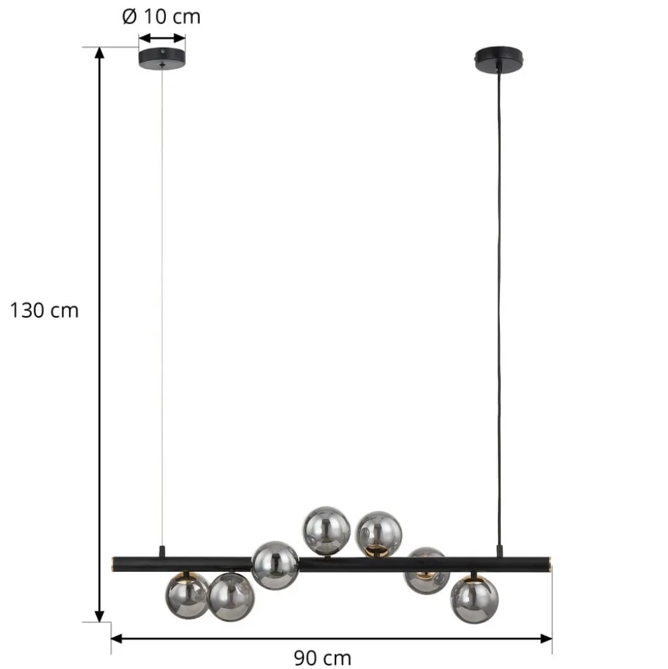Lucande-pendel Diborah, røggrå, glas, 90 cm, G9