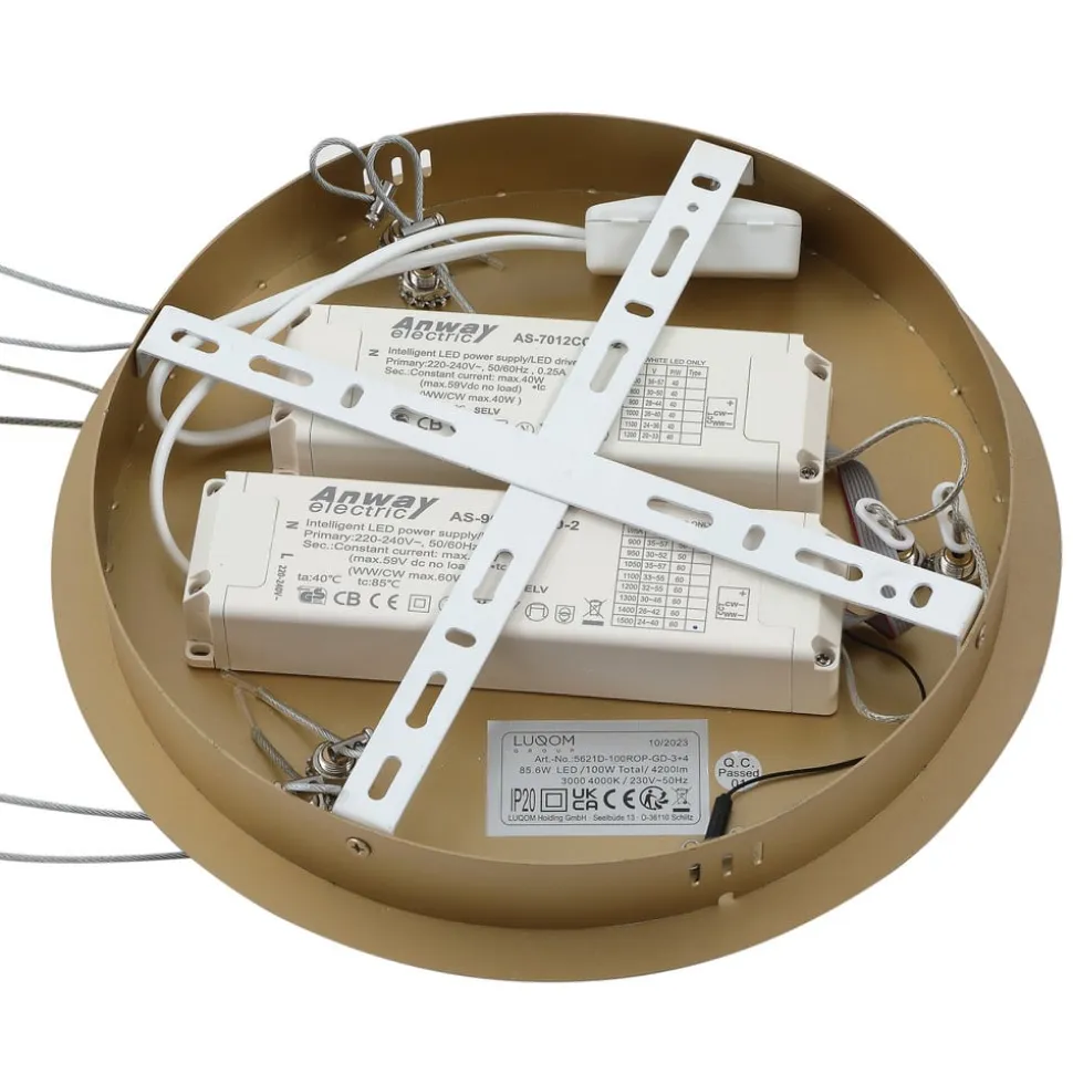 Elegant Lucane Yonam LED-pendel med CCT-funktion til stemningsbelysning Yonam LED-pendlen kombinerer elegant design med innovativ lysteknologi. CCT-funktionen gør det muligt at justere lysfarven efter behov – fra varme toner, der giver en hyggelig atmosfære, til køligere nuancer, der fremmer koncentration og produktivitet. Denne runde pendel med 2 lys i guld passer perfekt ind i moderne interiørstile og vil være et blikfang i enhver stue eller spisestue. Takket være den integrerede LED-lyskilde og energieffektivitet er denne lampe ikke kun et visuelt højdepunkt, men også et bevidst valg for en bæredygtig livsstil. Den medfølgende dæmpningsfunktion gør det muligt at justere lysstyrken individuelt, hvilket også hjælper med at spare energi og skabe den rigtige lysstemning til enhver situation. Kompatibilitet med Tuya og WLAN muliggør enkel kontrol via de tilsvarende iOS- og Android-apps. Det gør det nemt at justere belysningen fra en smartphone og gør Yonam LED-pendlen til et smart tilbehør til hjemmet.