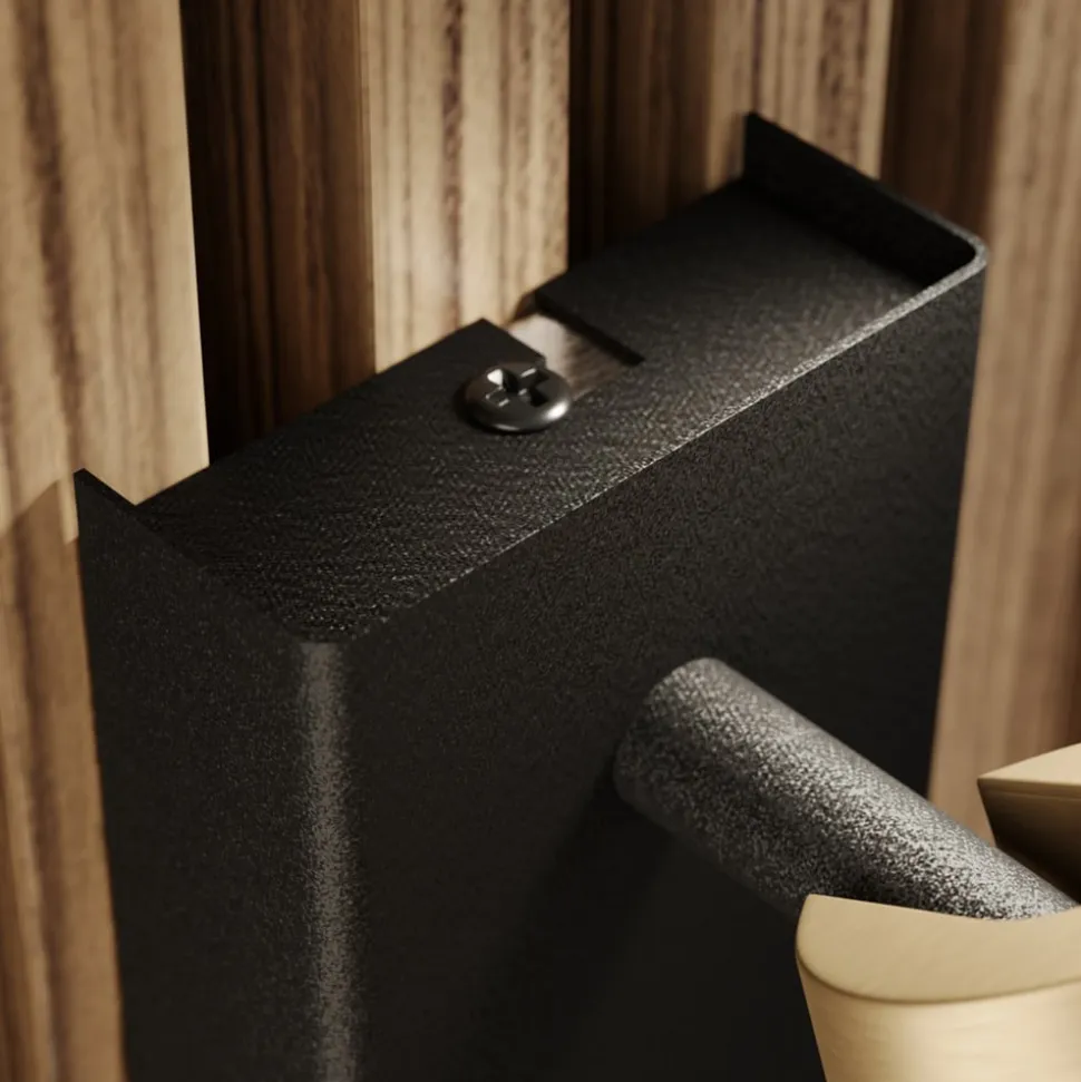 Stor kontrast i indretningen: Angelina spotlight med smal lampeskærm i mat messing og sort vægbeslag Angelina er visuelt imponerende ved første øjekast og er som spotlight en lyskilde, der er ideel til montering på væggen. Der imponerer lampen straks med sin drejelige skærm og tofarvede look. Metalskærmen har en mat messingfarve på ydersiden og en gylden farve på indersiden, mens den kantede holder er helt sort, hvilket skaber en smuk og meget stilfuld kontrast. Designet til LED-pærer med GU10-sokkel og også velegnet til loftsmontering.