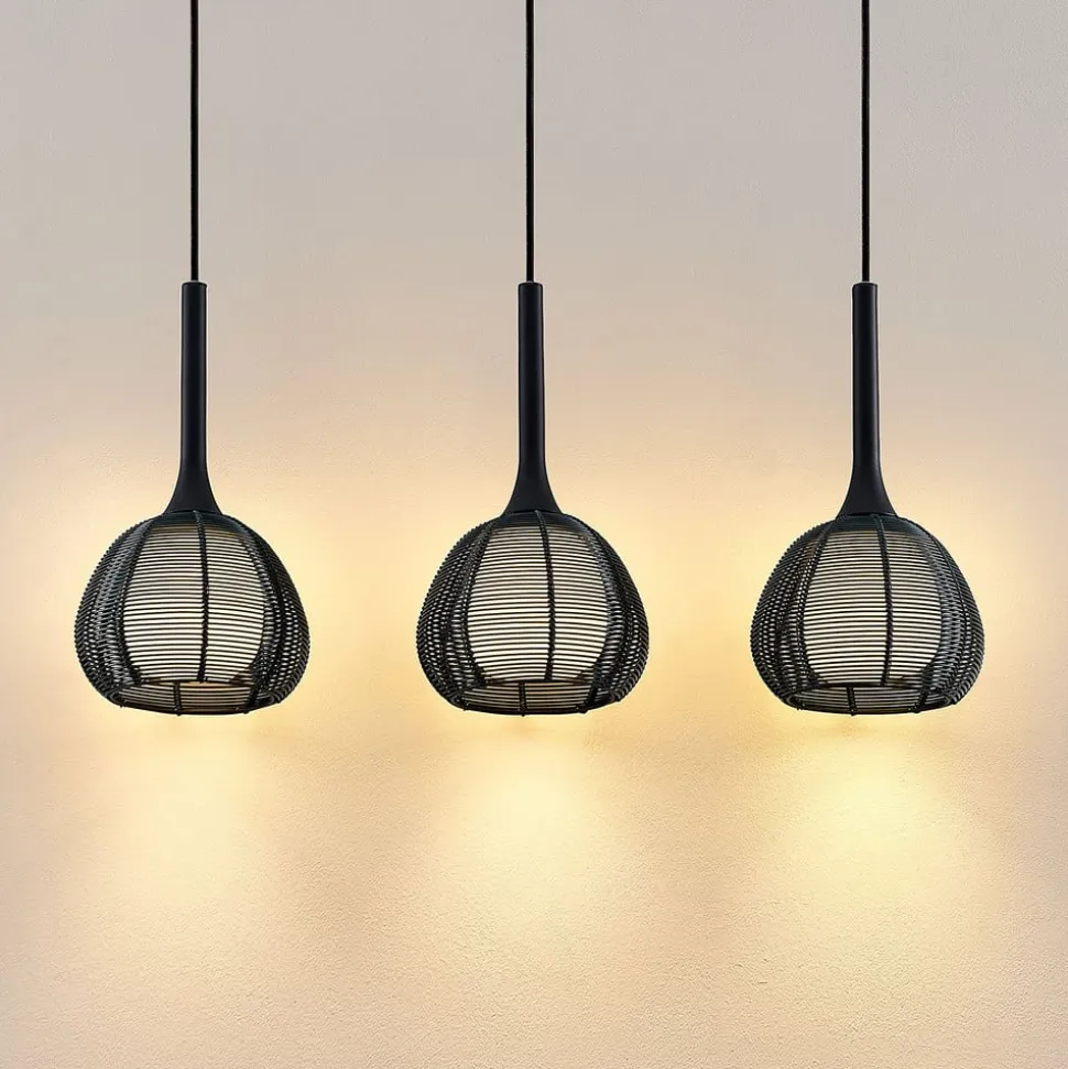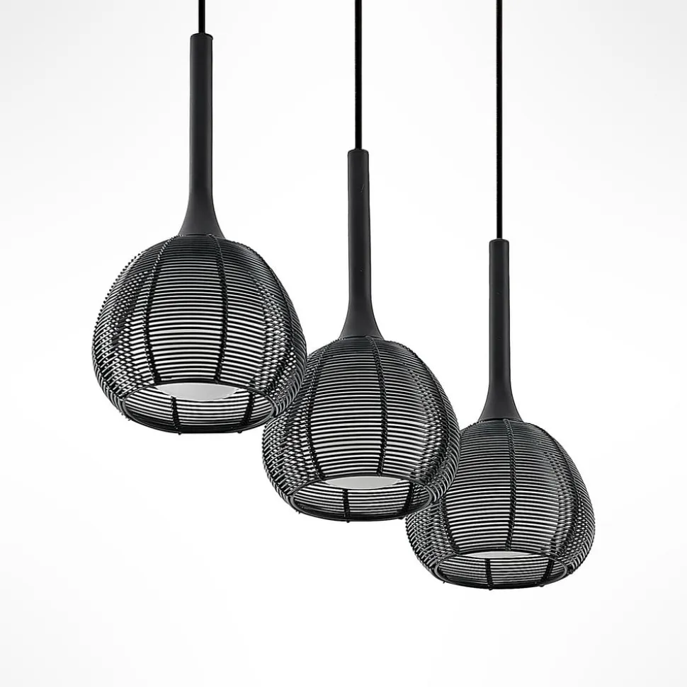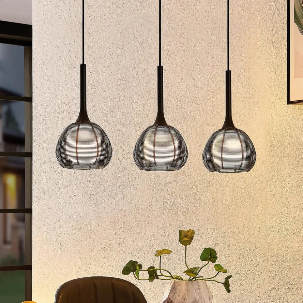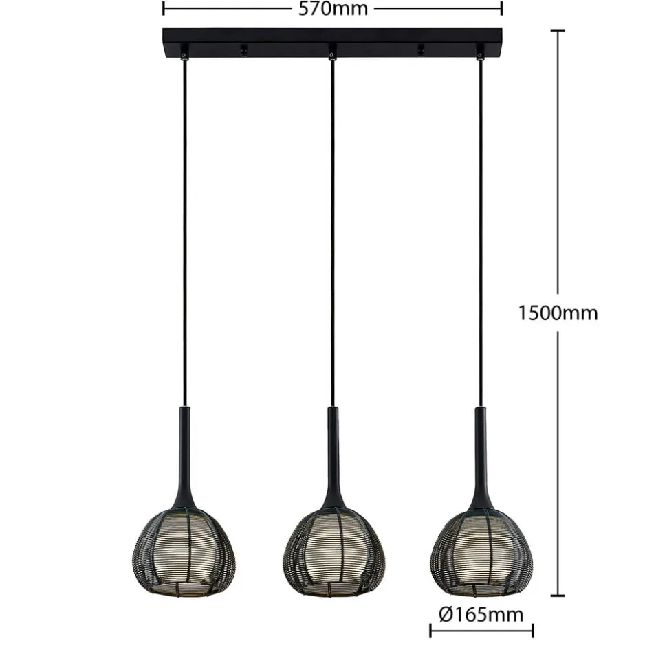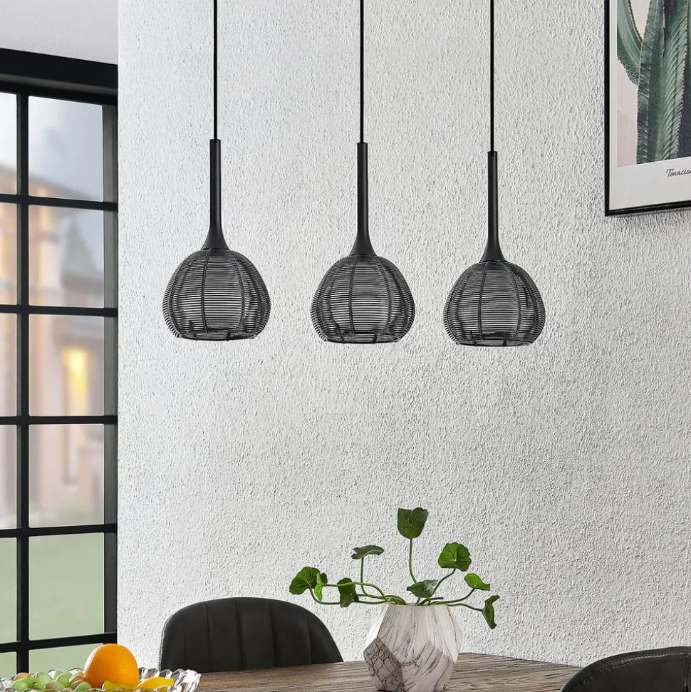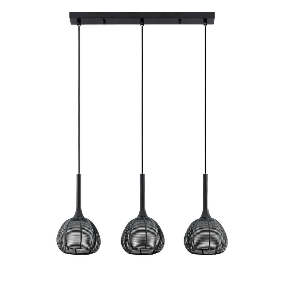 Tre- pendellampe Tetira pendelarmatur med sorte burskærme – ideel til spisebordet