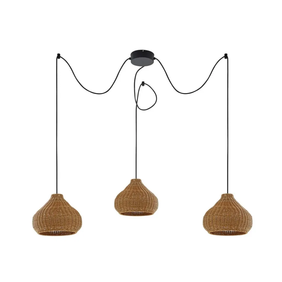 Lucande udendørs hængelampe Taniola, 3 lyskilder, beige, rattan, IP44