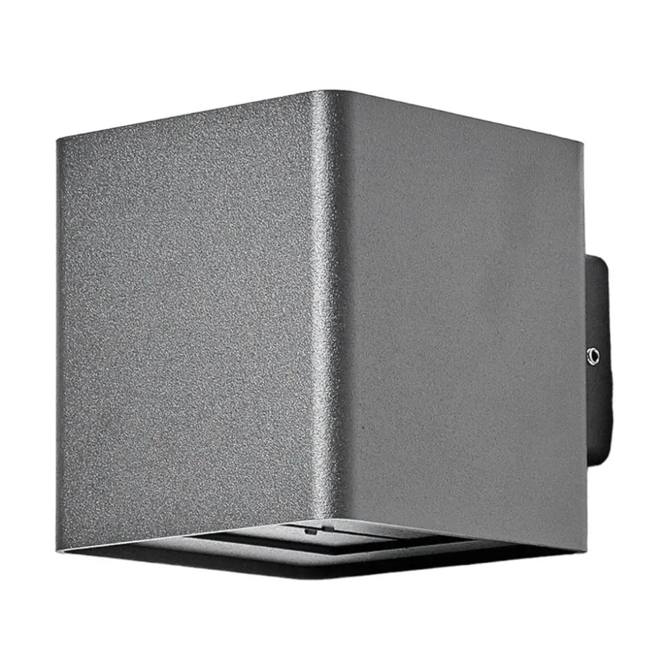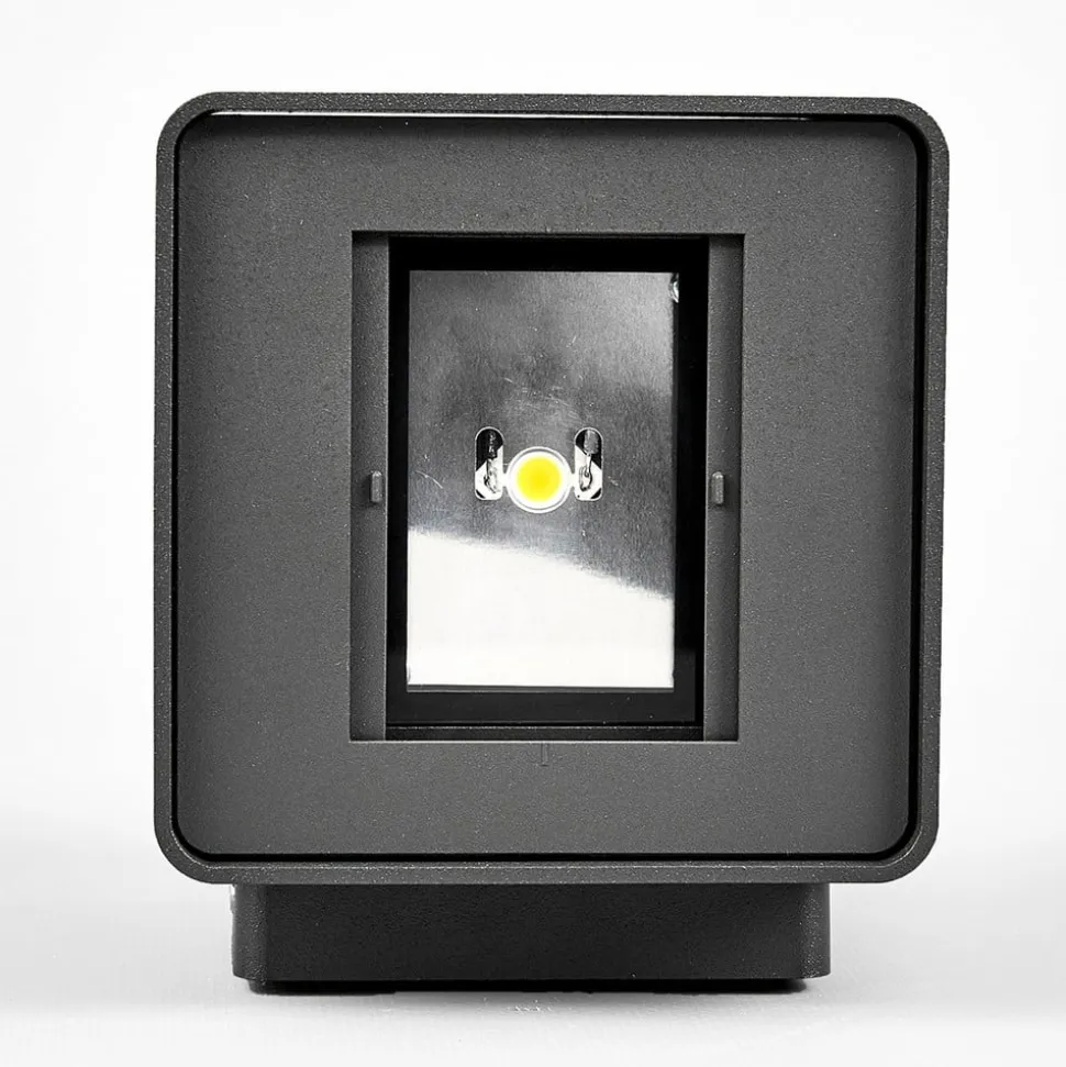 Aaron kantet udendørs LED-væglampe i grafitgrå Med grafitgrå er der valgt en farvefinish, som både er moderne og tidløs, og som derfor lover langvarig glæde af produktet. Takket være den kantede form er armaturets design behageligt diskret og passer til mange facader og stilarter. Lyset sendes både opad og nedad, og LED’erne af mærket Cree lyser i et varmhvidt lys, som de fleste mennesker finder tiltalende og indbydende. Med et lavt energiforbrug og en forholdsvis høj lysstrøm er Aaron en meget energieffektiv udendørs LED-væglampe, som er skånsom mod pengepungen. Lysudstrålingsvinklen kan justeres både opad og nedad, fra meget bred til meget smal. Det giver mulighed for at opnå fantastiske effekter, som ofte kan ses på lang afstand i udendørs områder.