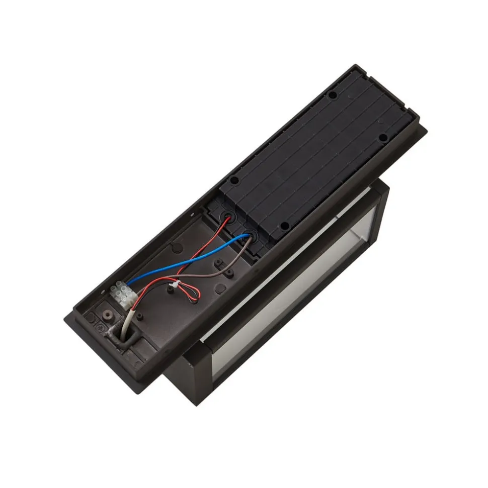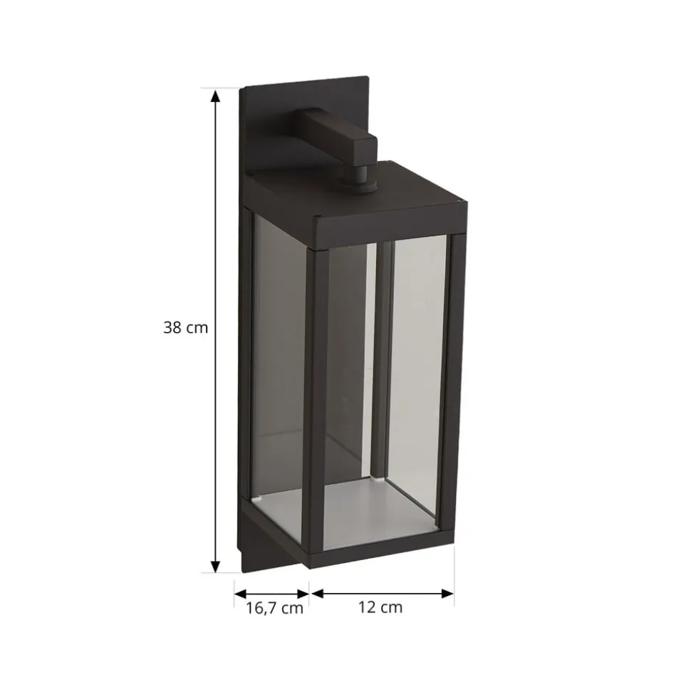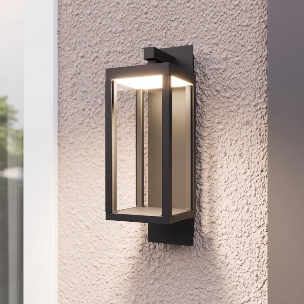 Denne udendørs LED-væglampe har et mørkegråt metalstel, der suppleres af klare glasplader, der giver fuld gennemsigtighed. Derfor går intet af LED’ernes lysstyrke tabt, og man kan opnå en god lysstyrke rundt om huset med denne udendørs LED-væglampe.