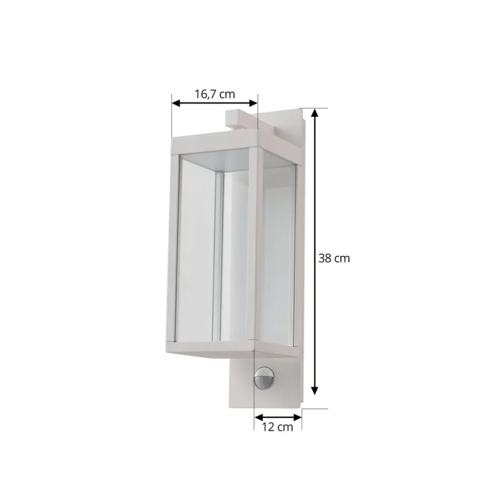 Lucande udendørs LED-væglampe Ferdinand, hvid, sensor, 38 cm