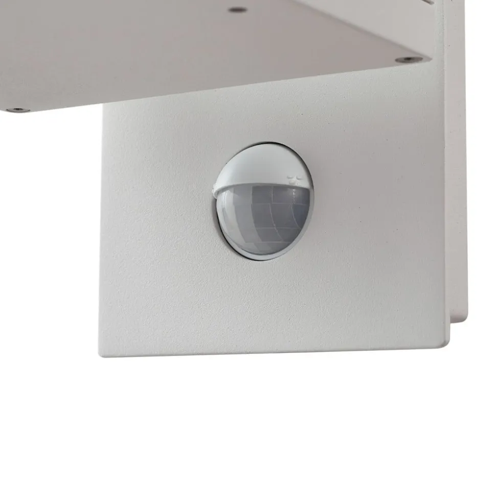 Hvid udendørs LED-væglampe Ferdinand med bevægelsessensor Den udendørs LED-væglampe Ferdinand kombinerer moderne design med høj funktionalitet og er specielt designet til udendørs brug. Takket være kapslingsgraden IP54 er denne lampe optimalt beskyttet mod støv og vandsprøjt, hvilket gør den til en ideel belysningsløsning til altaner og terrasser. Den integrerede LED-lyskilde skaber ikke kun en behagelig atmosfære, men er også kendetegnet ved sin energieffektivitet. Med sit klare, hvide udseende og moderne stil sætter Ferdinand-lampen æstetiske accenter, samtidig med at den giver ekstra komfort og sikkerhed takket være den integrerede sensor. Tekniske data sensor – Belysningsindstilling 15 – 2000 lux – Registreringsområde 8-10 m – Registreringsvinkel 120° – Belysningstid justerbar fra 8 sekunder til 8 minutter – Optimal installationshøjde 0,7-2,5 m