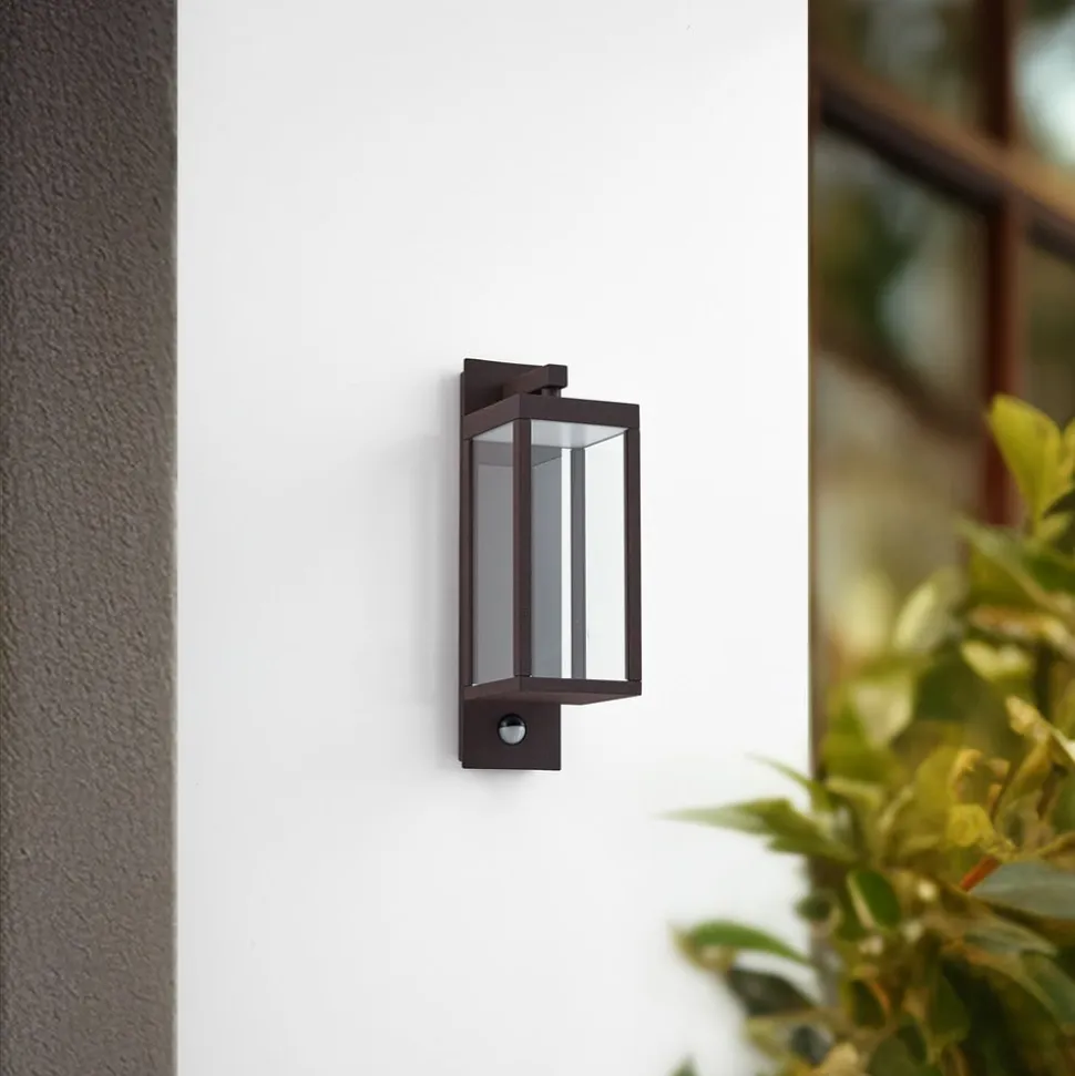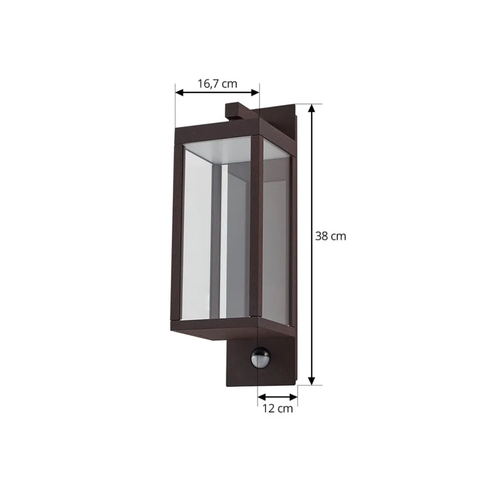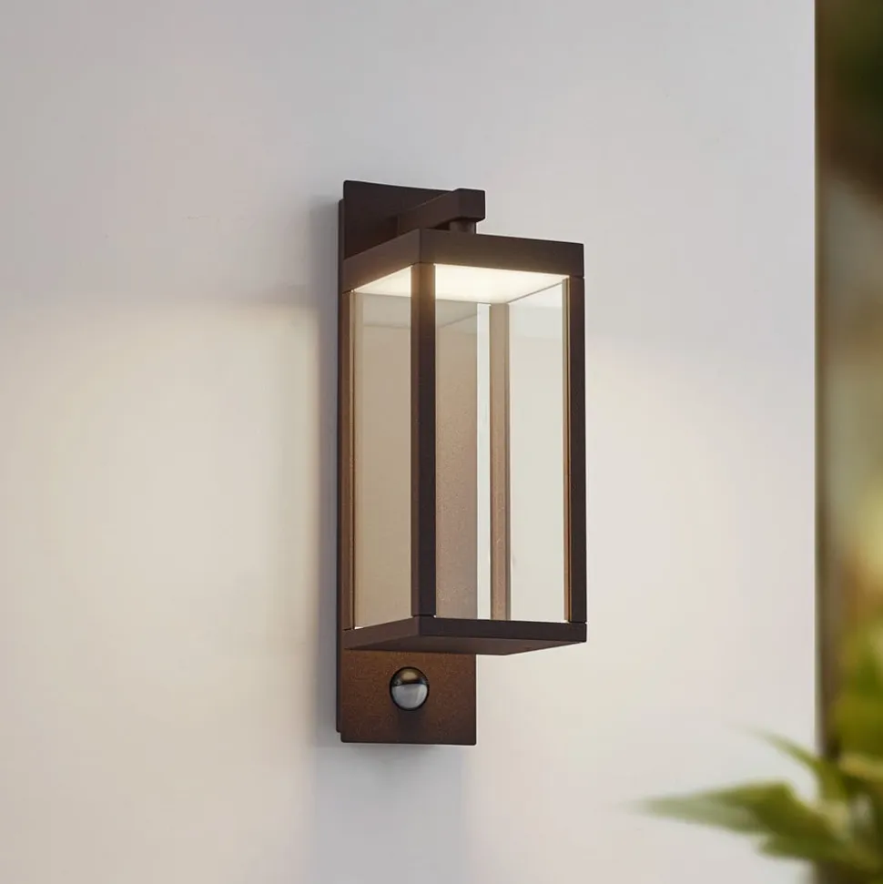 Lucande udendørs LED-væglampe Ferdinand, rust, sensor, IP54