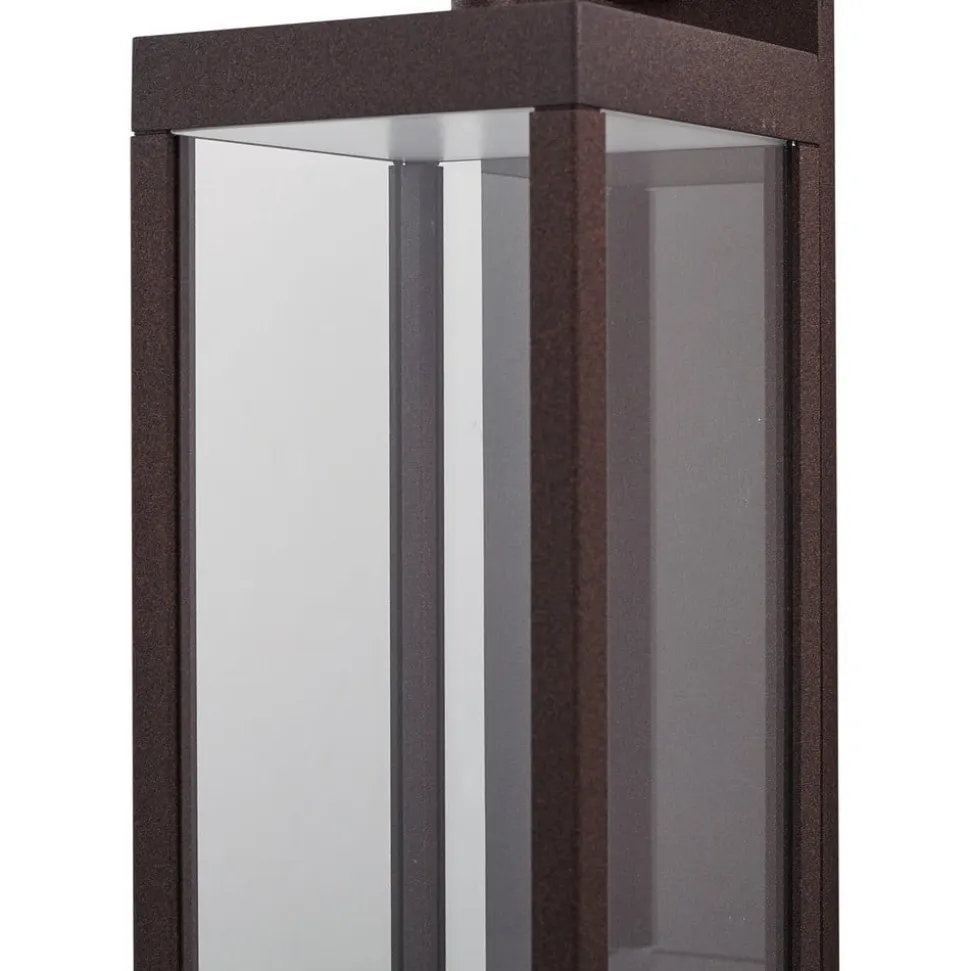 Kantet udendørs LED-væglampe Ferdinand i rustfarvet design med bevægelsessensor Oplev, hvordan den udendørs LED-væglampe Ferdinand ikke kun oplyser dit udendørsområde, men også skaber en atmosfære af elegance og stil. Med sit moderne design og varme rustfarve passer den harmonisk ind i arkitekturen på altaner og terrasser. Den integrerede LED-lyskilde giver effektiv belysning, mens den høje kapslingsgrad på IP54 sikrer, at armaturet fungerer pålideligt selv under ugunstige vejrforhold. Den integrerede sensor giver ekstra komfort og sikkerhed ved automatisk at aktivere lyset, så snart der registreres bevægelse. Med Ferdinand kan du stole på en kombination af attraktivt design og praktisk funktionalitet til dit udendørs område. Tekniske data Sensor – Belysningsindstilling 15 – 2000 lux – Registreringsområde 8-10 m – Registreringsvinkel 120° – Lysets varighed kan justeres fra 8 sekunder til 8 minutter – Optimal installationshøjde 0,7-2,5 min