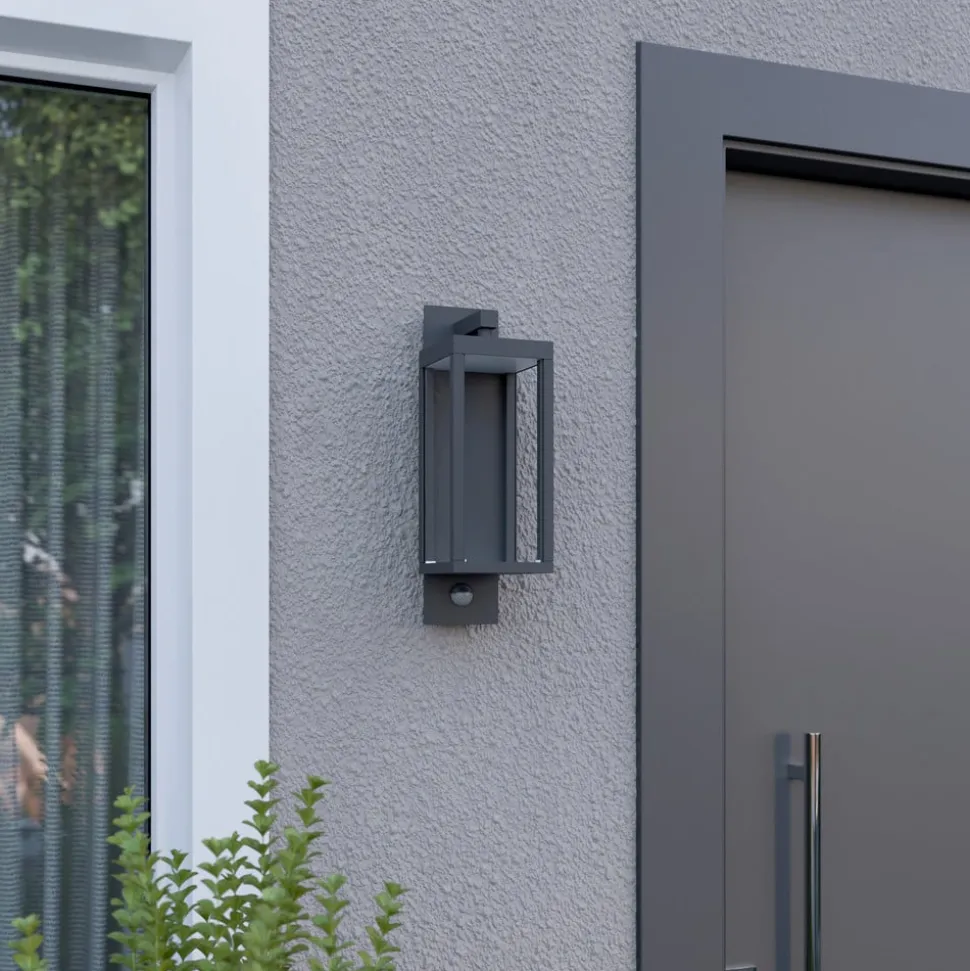 Lucande udendørs LED-væglampe Ferdinand, sensor, grå, 38 cm